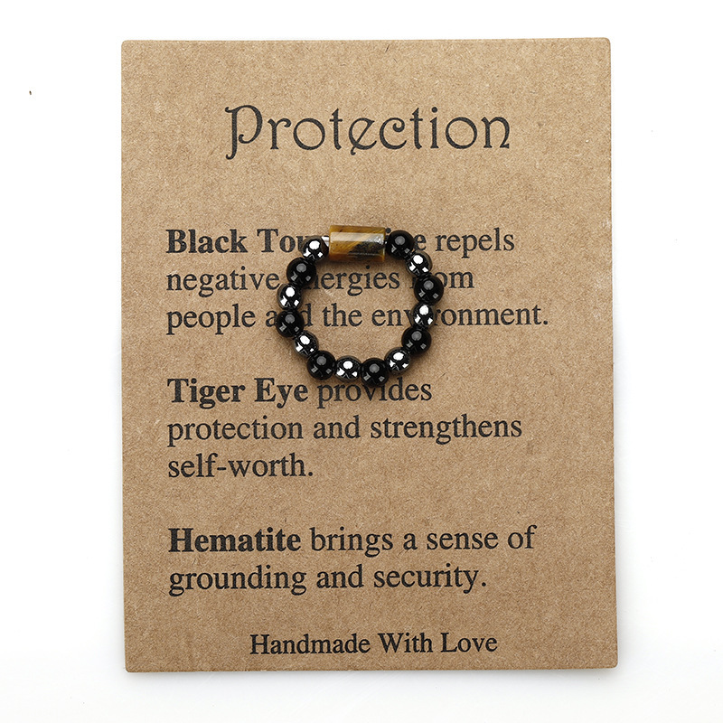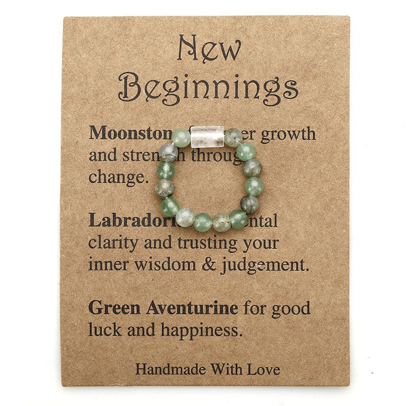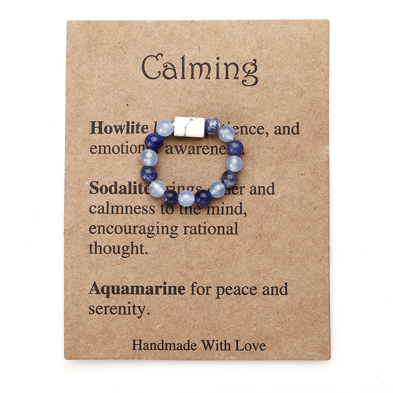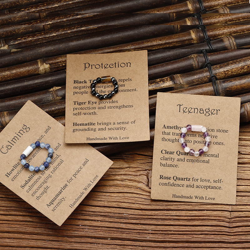 European and American New Stone Beaded Elastic Ring Handmade Amethyst Sodalite White Crystal Column Stone Ring