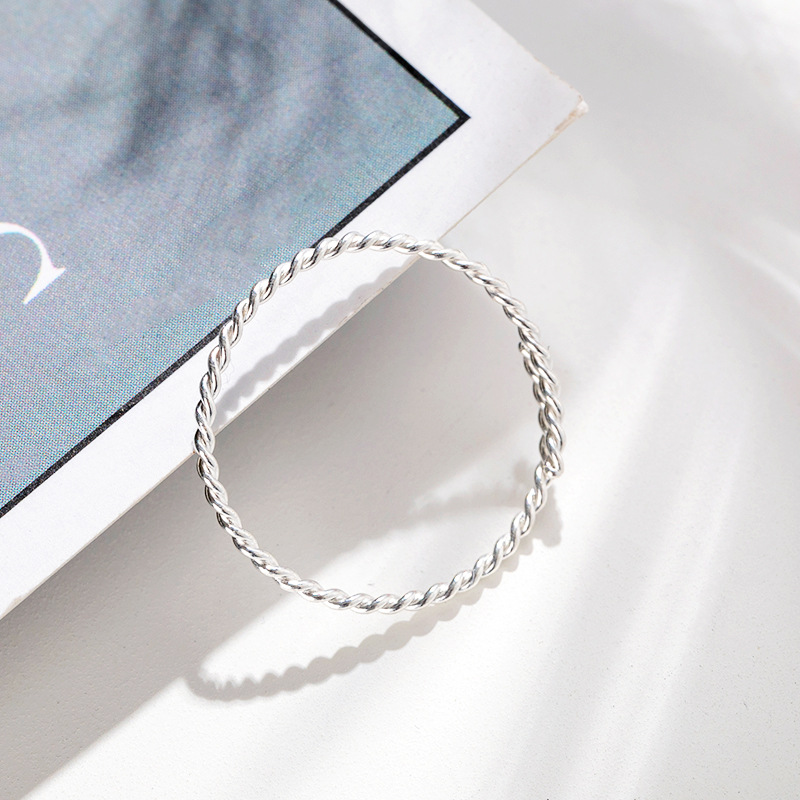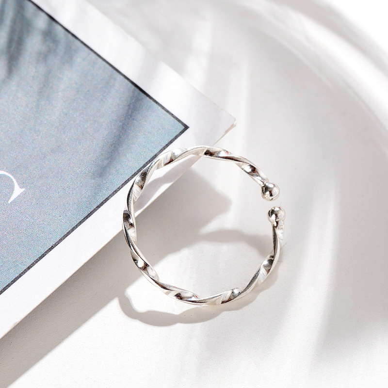 Happy Silversmith S999 Sterling Silver Plain Ring Twist Women's Niche Design Advanced Index Finger Ring Tail Ring
