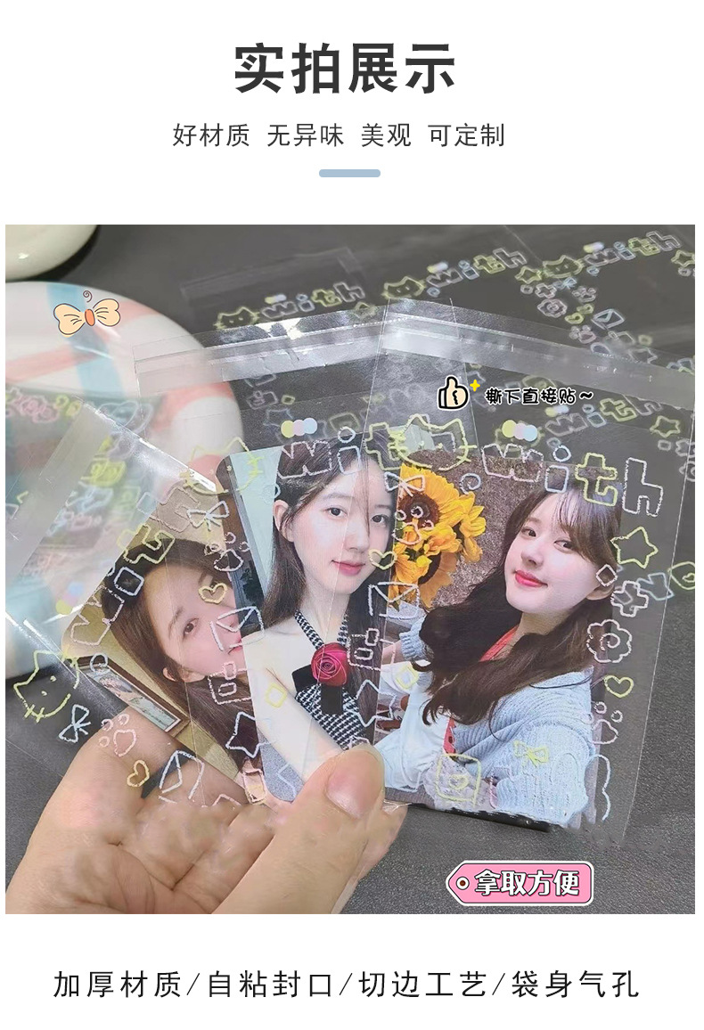 Cute kitten self-sealing bag universal ins small card packaging bag packaging bag jewelry earrings storage gift bag