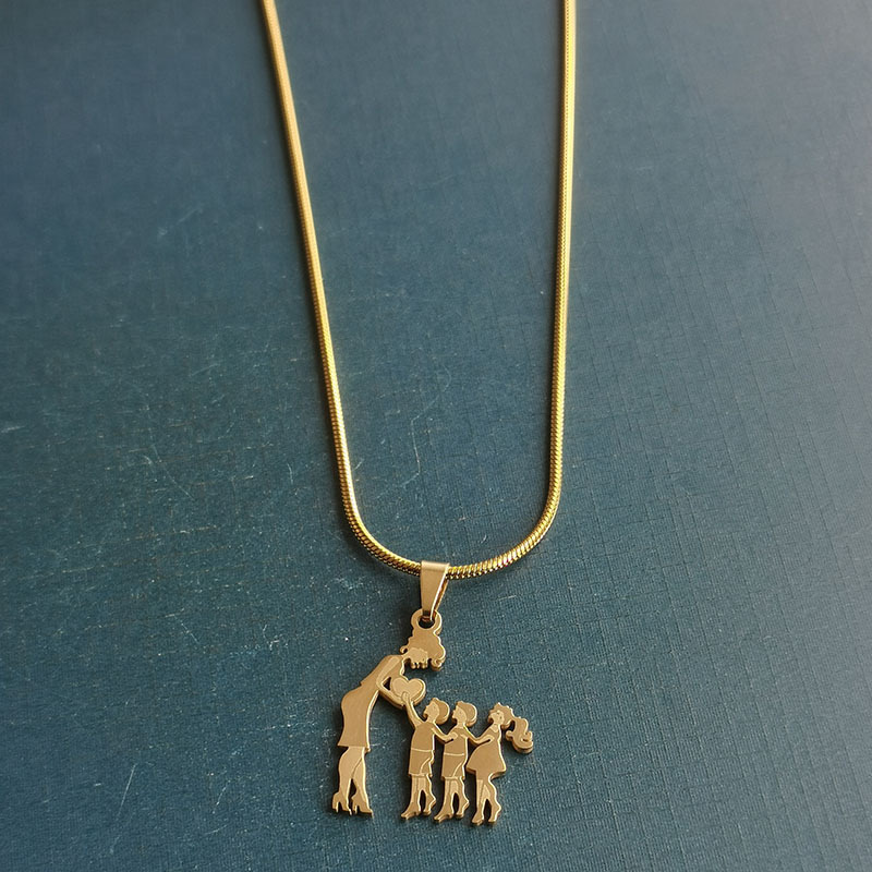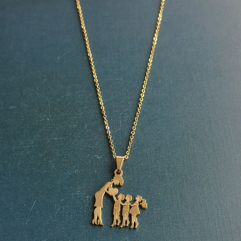 Foreign Trade Cross-border Titanium Steel Stainless Steel Mother's Day Necklace Pendant Retro Temperament Creative Mother Two Boys One Girl