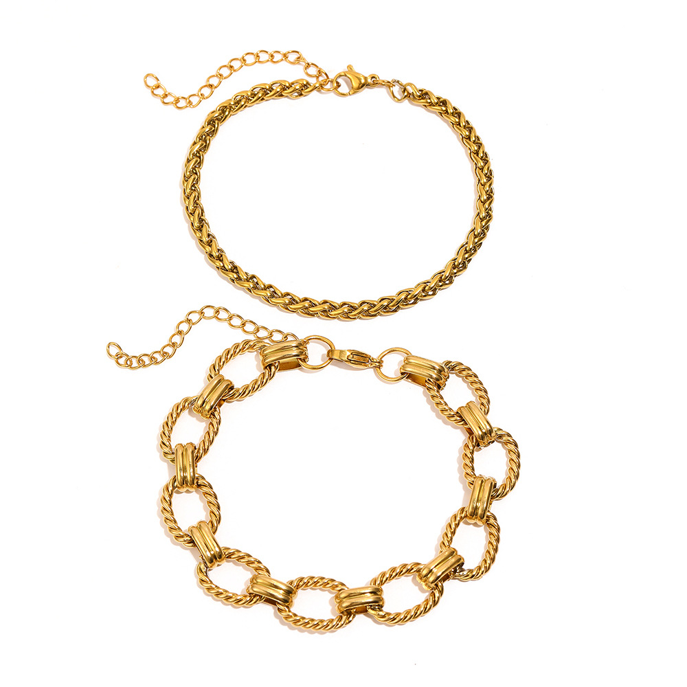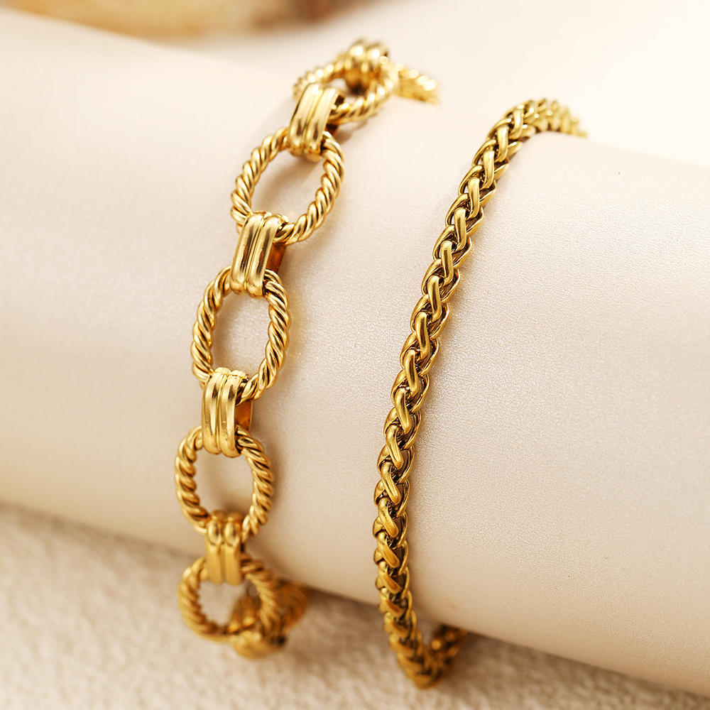 European and American Stainless Steel Men's Cuban Bracelet Double Layer Overlapping suit Bracelet Figaro Twist Simple No Fade