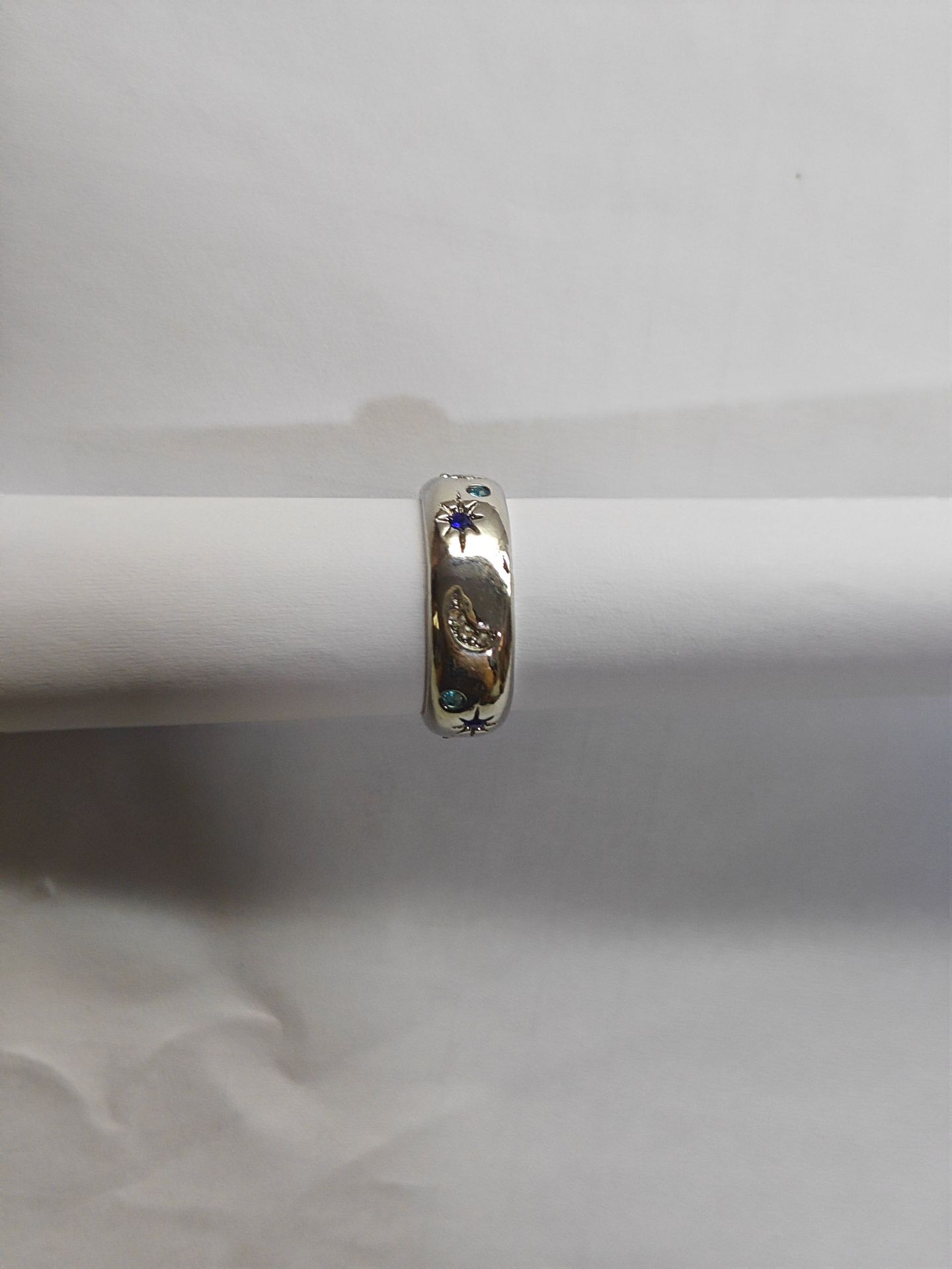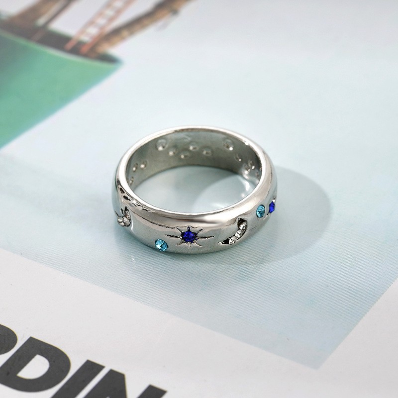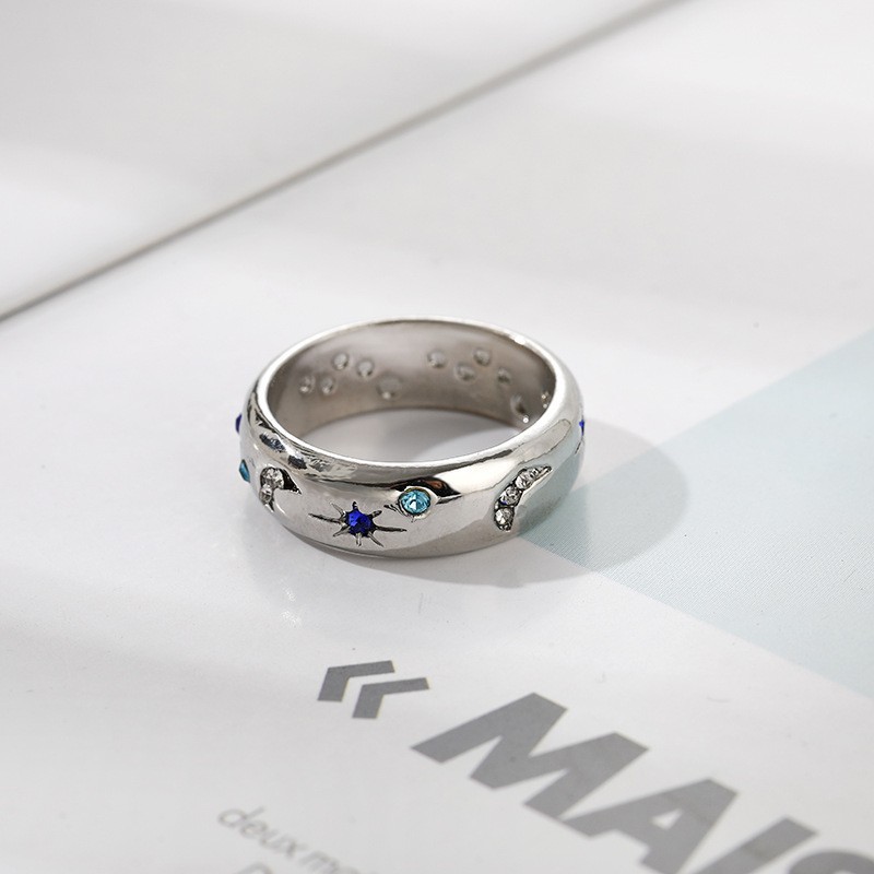 Cross-border All-over Inlaid with Colorful Zircon Women's Simple and Fashionable Ring Star and Moon Full Circle Index Finger Ring