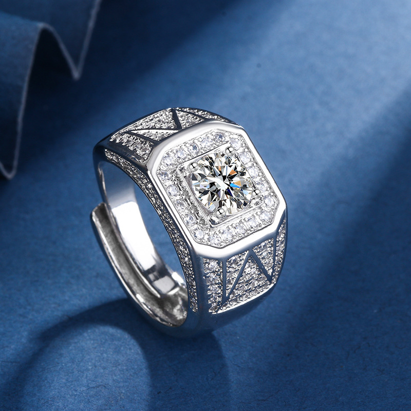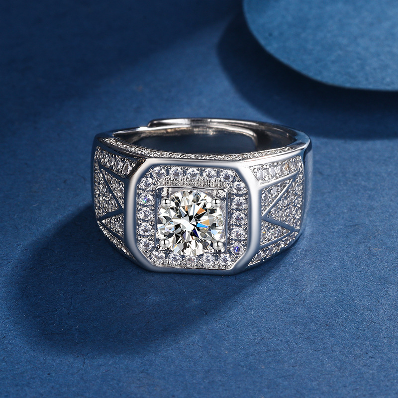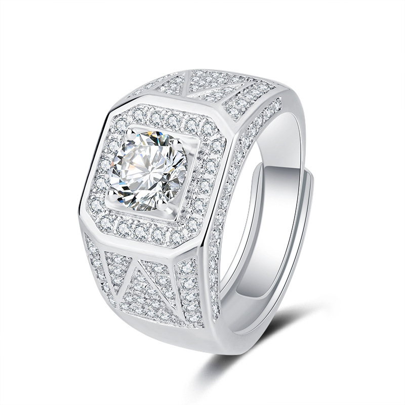 Classic high carbon diamond high simulation men's diamond ring imitation moissanite platinum plated domineering wedding ring wholesale