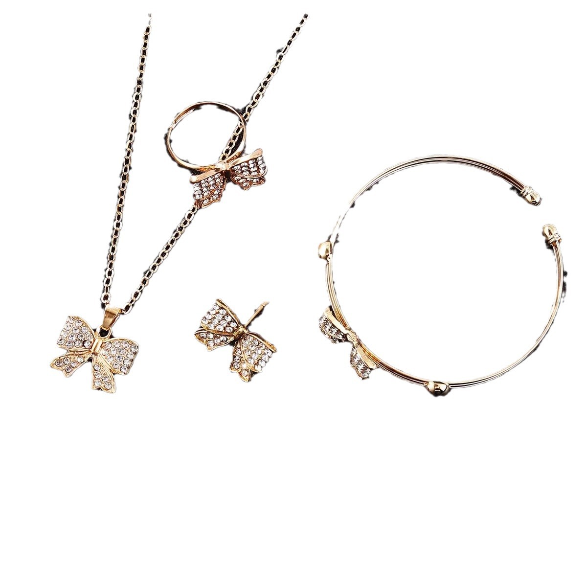 European and American New Fashion All-match Butterfly Light Luxury Simple Style Necklace Earrings Bracelet Ring 4-piece suit in stock