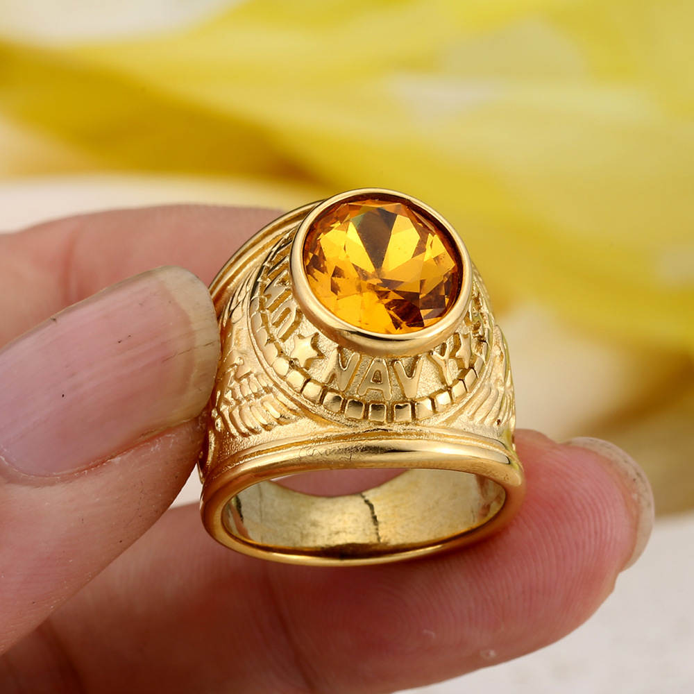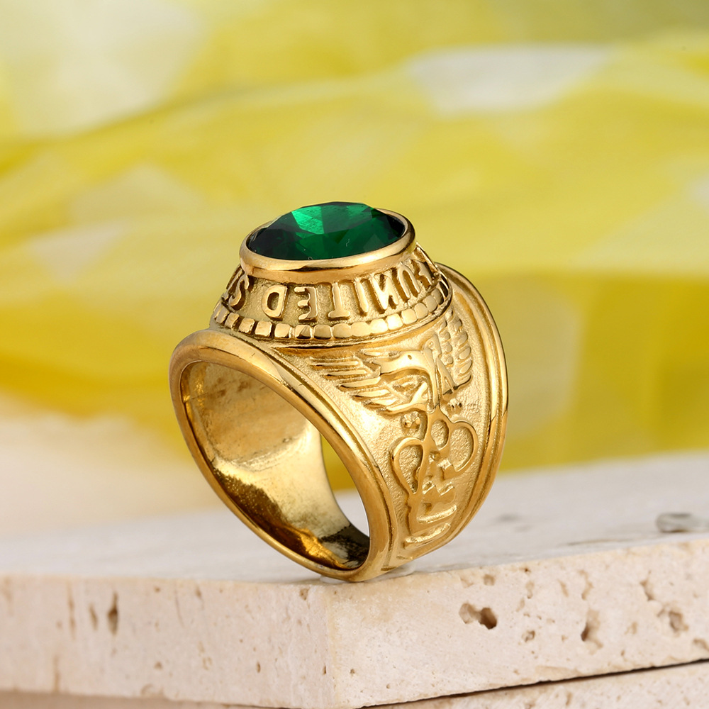 New titanium steel 18k gold multi-color gem ring Europe and the United States cross-border retro fashion female personality stainless steel letter finger