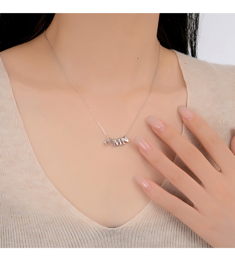S925 Sterling Silver European and American Cut Out 26 English Letters DIY Pendant Fashion New Your Name Jewelry Clavicle Chain