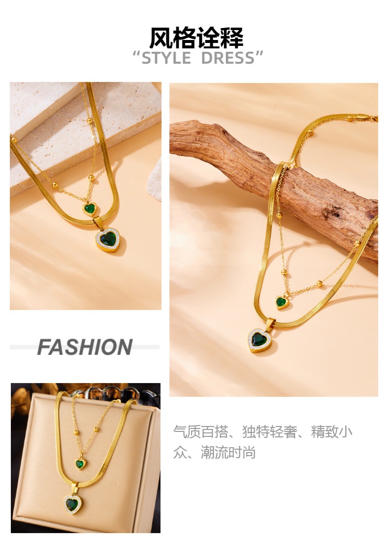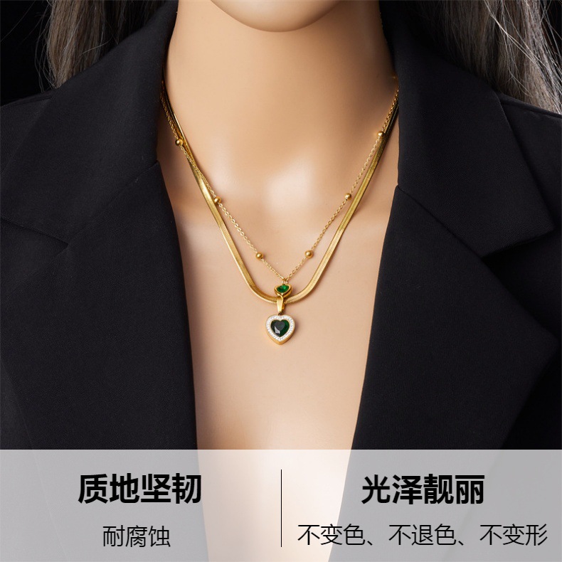 European and American Fashion Retro Simple Double Layer Stacked Wear Gold Plated Chain Diamond Love Pendant Stainless Steel Jewelry Necklace