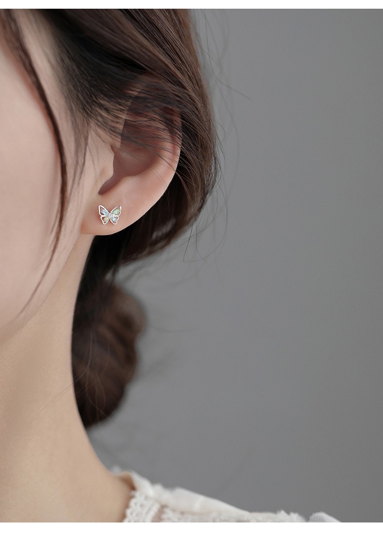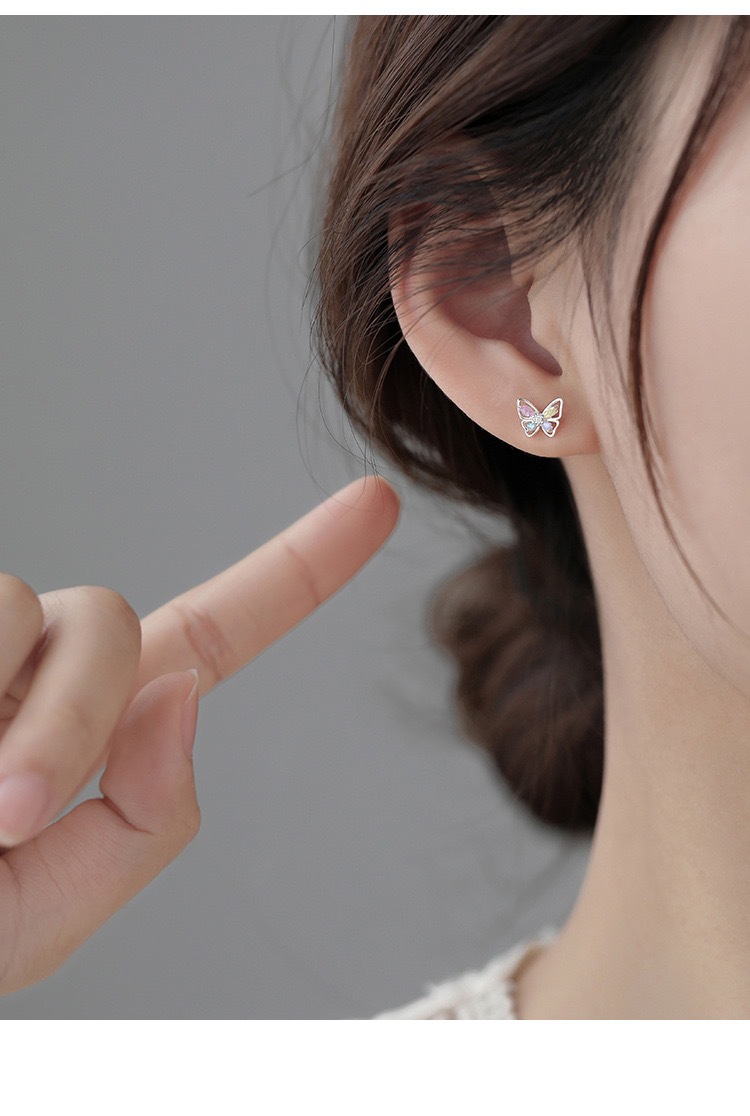 Fashion Ins Small Color Zircon Butterfly Earrings Women's Light Luxury High-end Sense Exquisite Elegant All-match Earrings