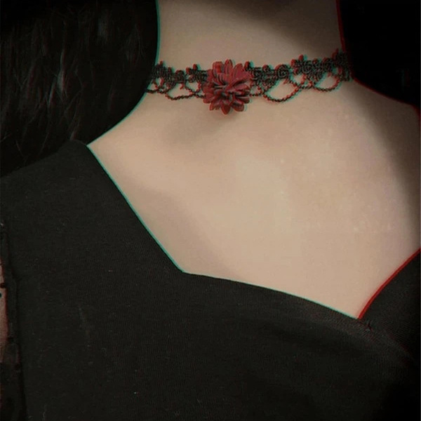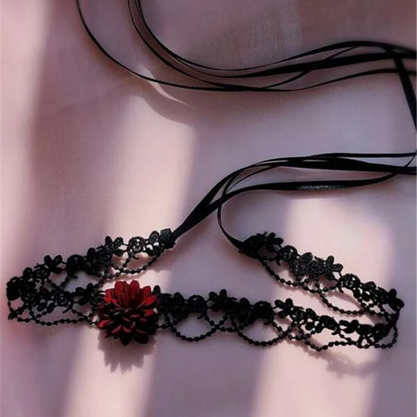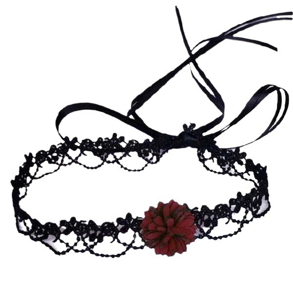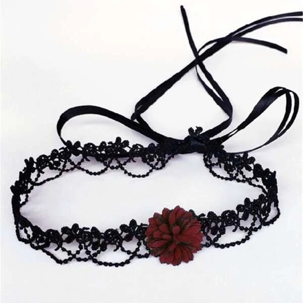 Black Lace Lace Long Choker Collarbone Necklace wine red Braided Rose Flower Neck Collar Tie Rope