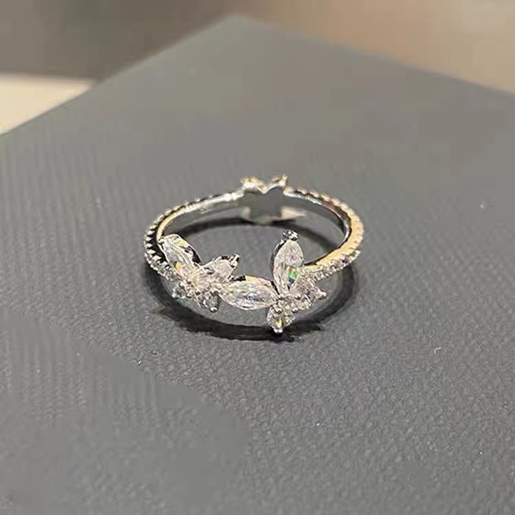 Little Red Riding Book Same light green Butterfly Shining Opening Ring Niche Fresh All-match Ring 2024 New