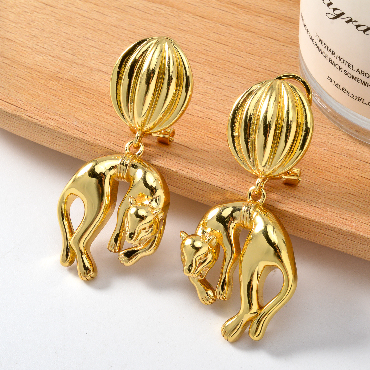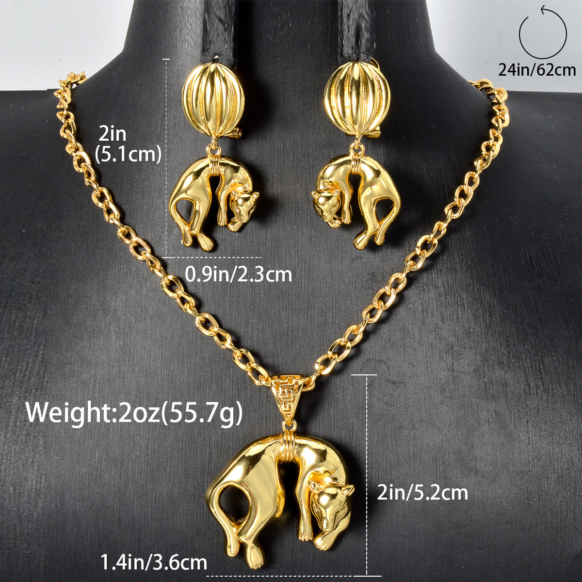 Cross-border Dubai Exaggerated 18k Gold Plated Copper Leopard Earrings Pendant suit Fashion Versatile