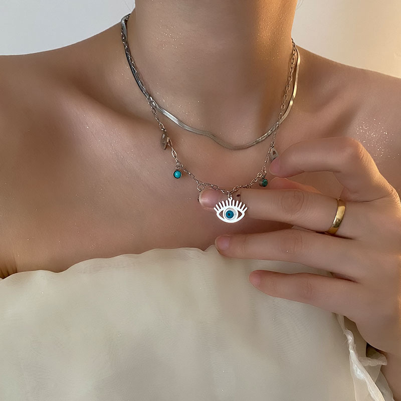 Color: 01-H7 Titanium Steel Devil's Eye Necklace silver
