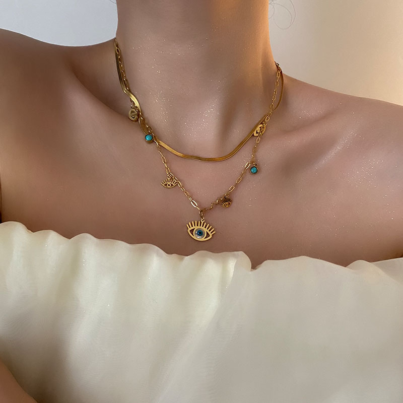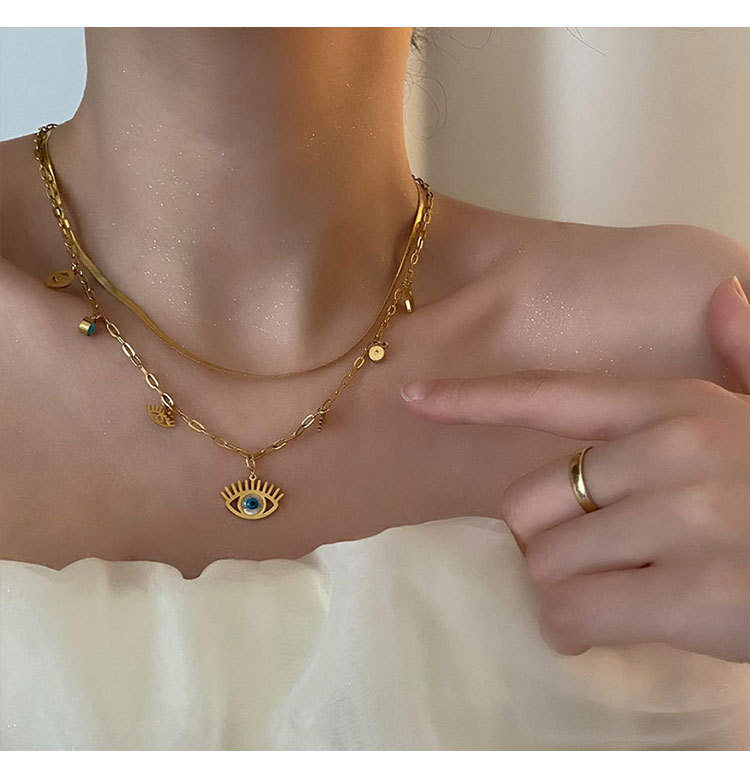 Color: 01-H1 Titanium Steel Devil's Eye Necklace Gold