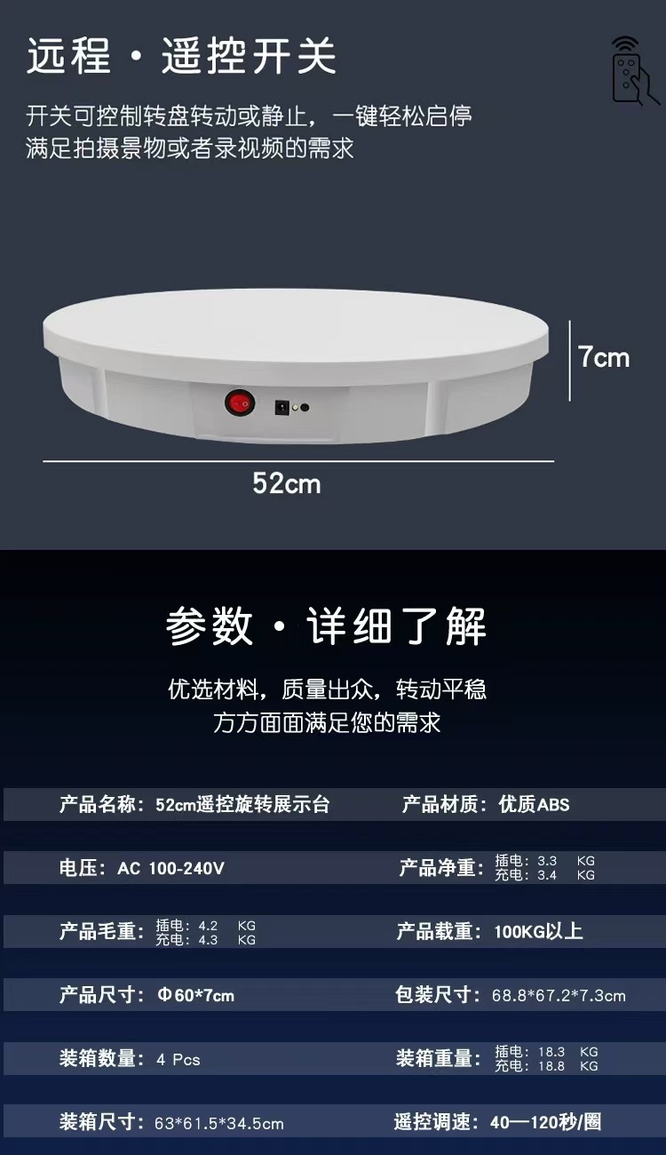 Color: 22cm remote control black 50kg load capacity