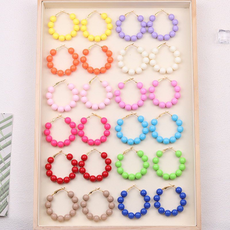 Summer Earrings Dopamine Beaded Candy Color Acrylic Earrings Small Fresh Exaggerated Fashion Earrings Ear Jewelry for Women