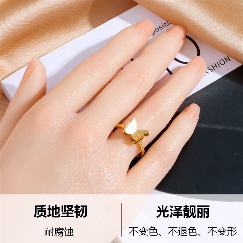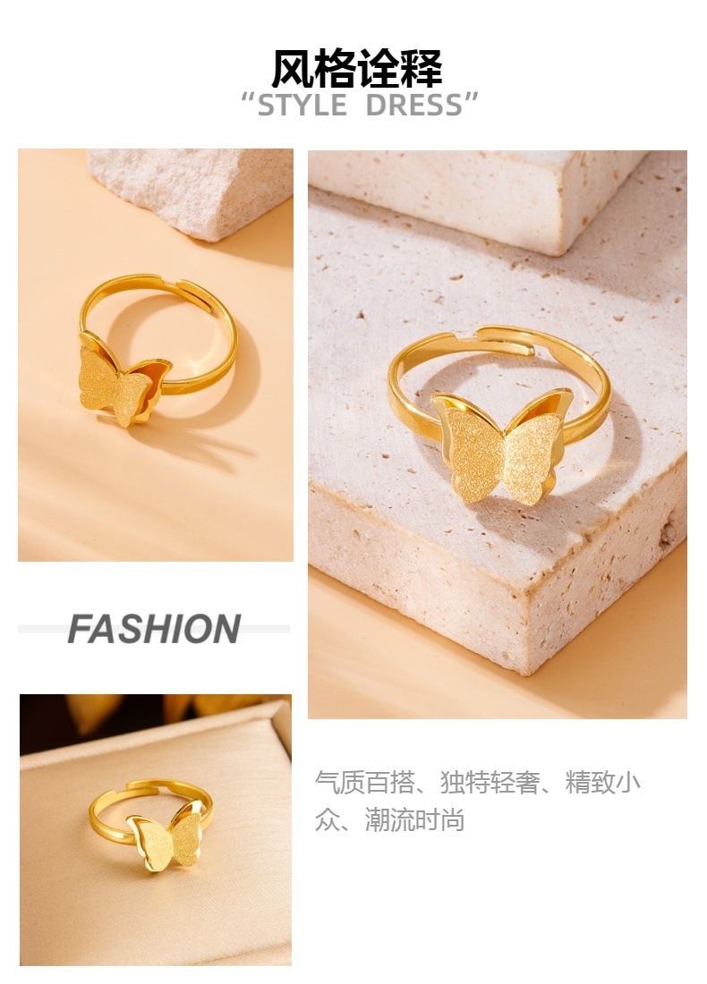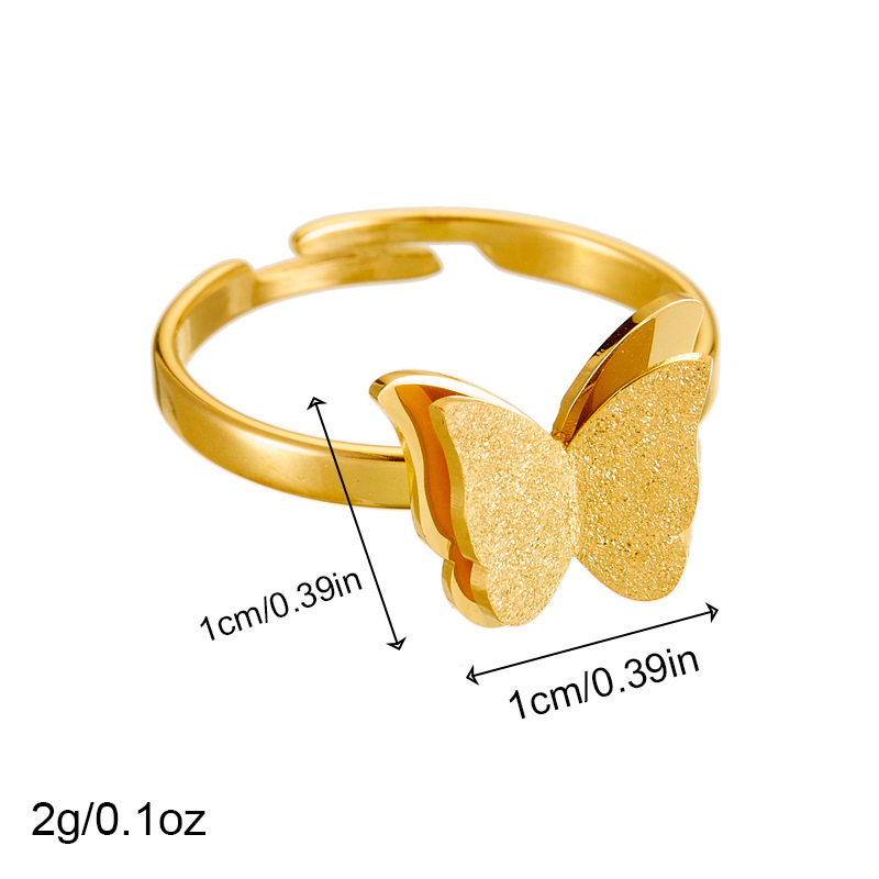 Cross-border fashion simple versatile gold-plated three-dimensional stainless steel butterfly accessories opening adjustable jewelry ring