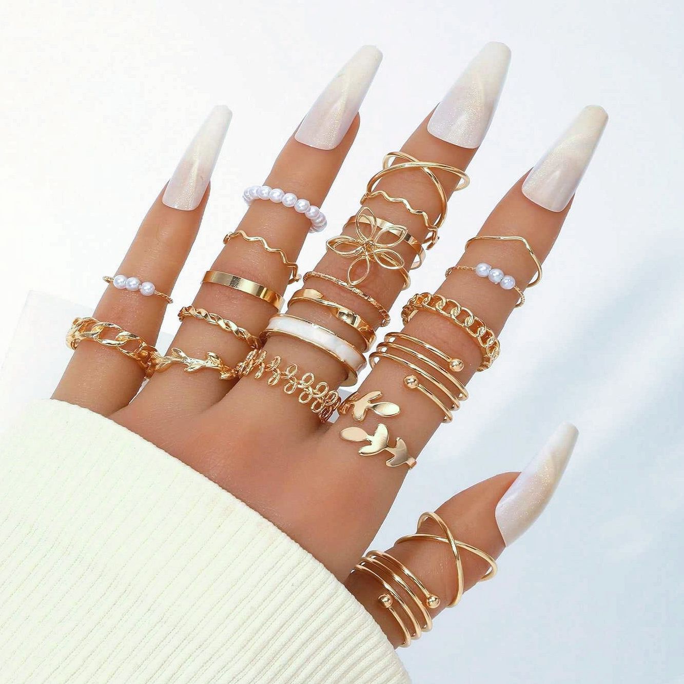 European and American Cross-border Explosions Design Sense Niche Butterfly Ring Open Joint Ring suit 22-piece Love Ring