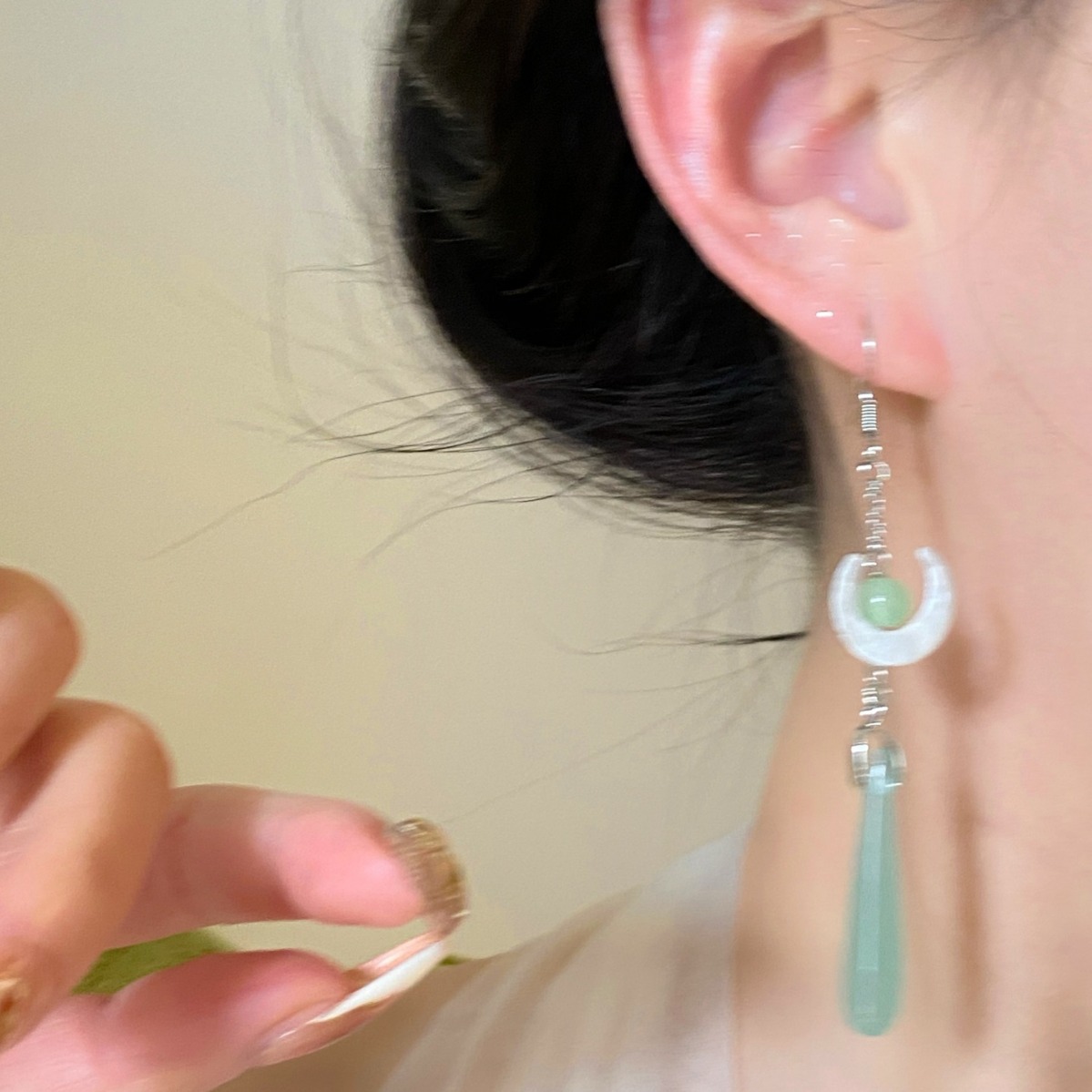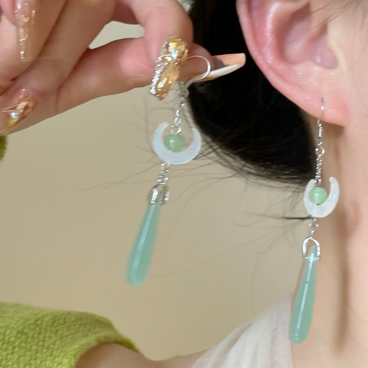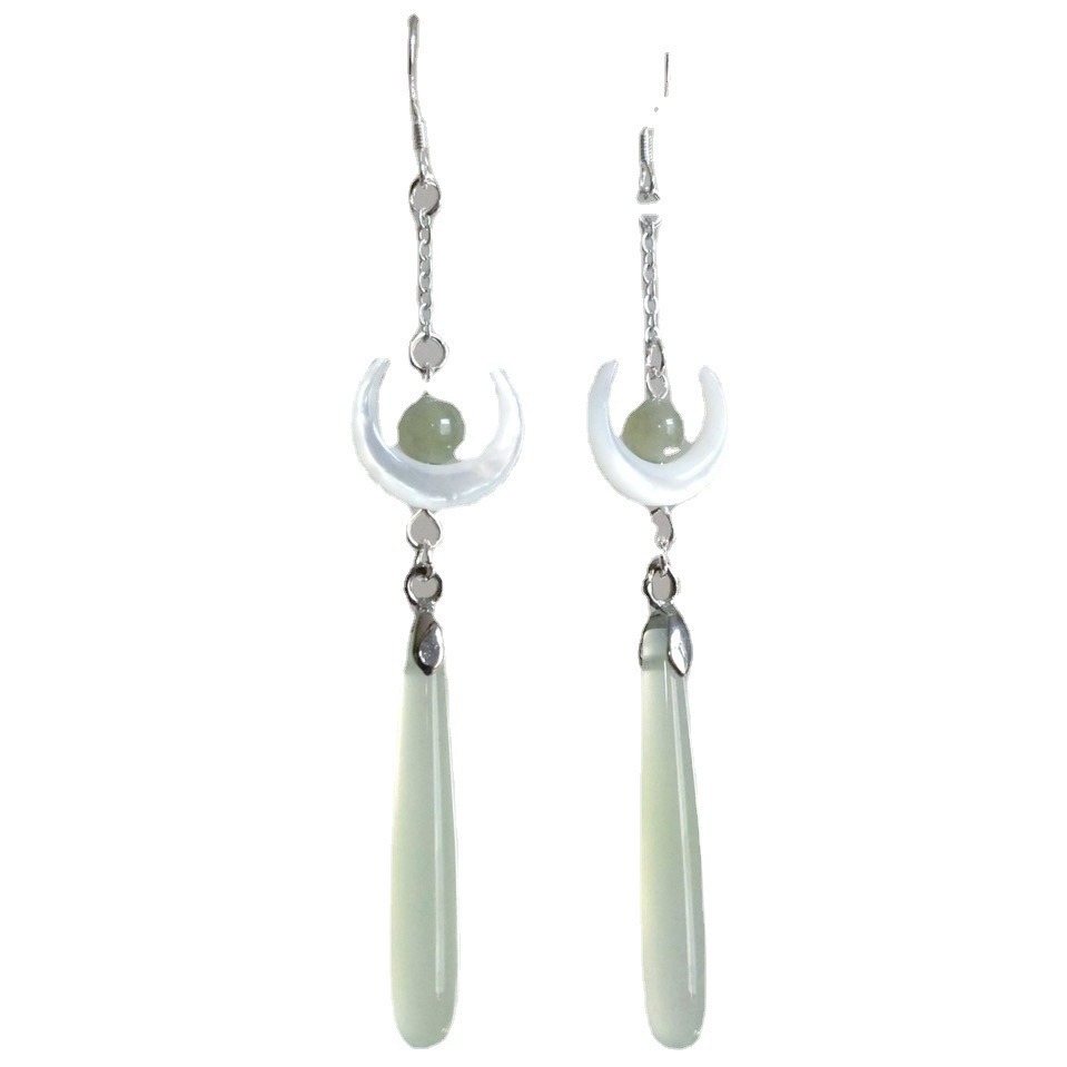 Chinese Style Small Fresh Handmade Moon Water Drop Imitation Hetian Jade Retro Elegant Tassel Earrings Earrings Jewelry