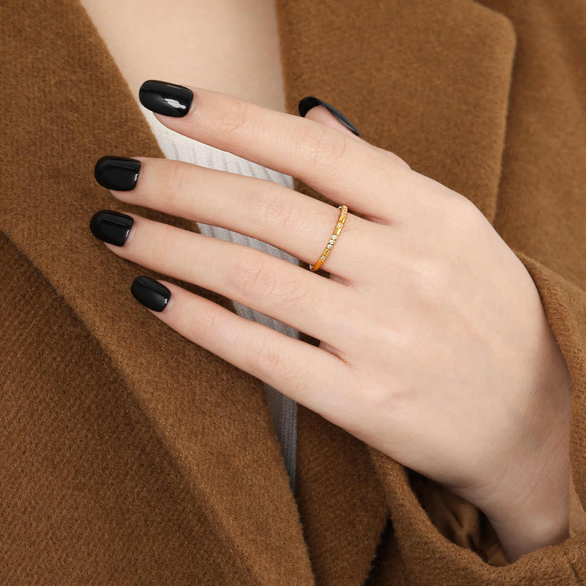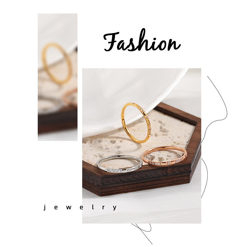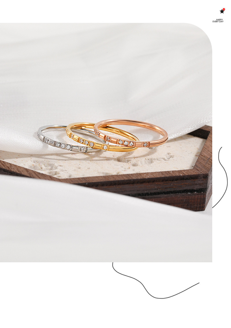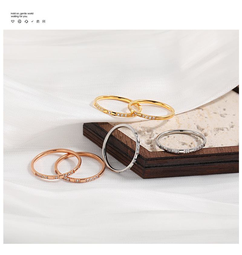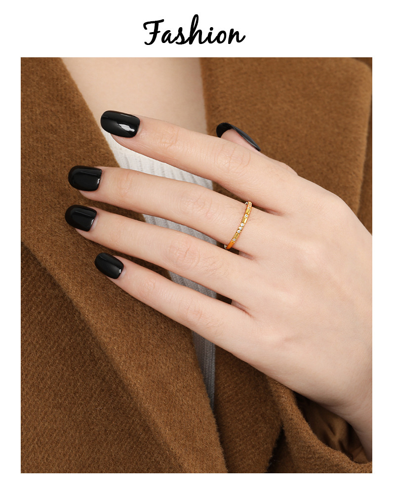 Korean Style Fashion Simple Lifetime Nine-grain Stone Spacer Diamond Ring Women's Personalized Gold Plated Titanium Steel Index Finger Ring