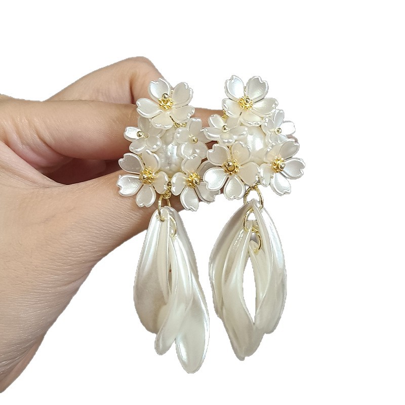 Super Fairy French Jasmine Flower Exaggerated Earrings Niche Design High-grade Long Tassel Earrings Bridal Earrings Women
