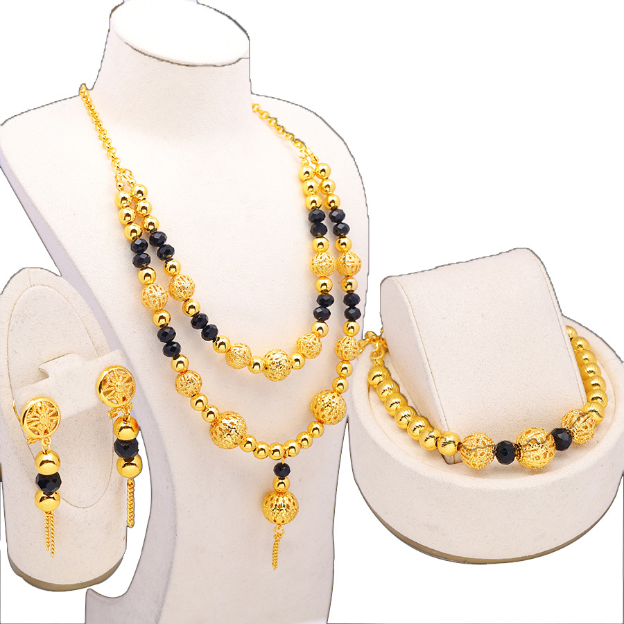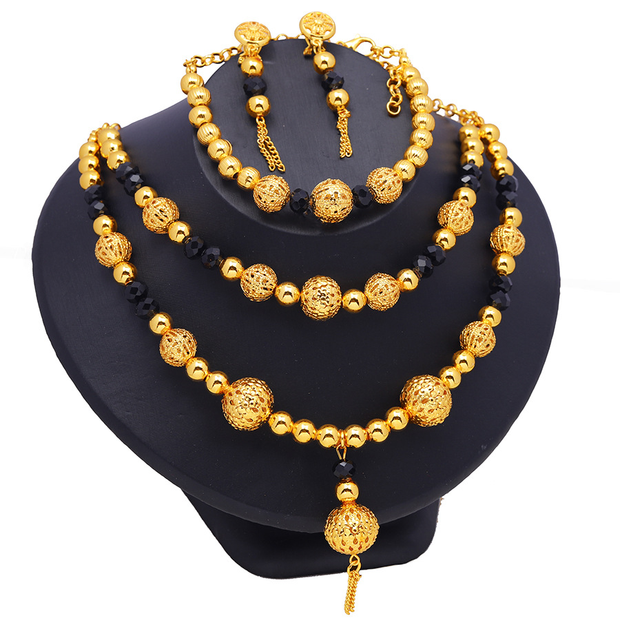 Dubai Bride 24k Gold Plated Necklace Bracelet Earrings Jewelry Set African Women's Jewelry Three-piece Set