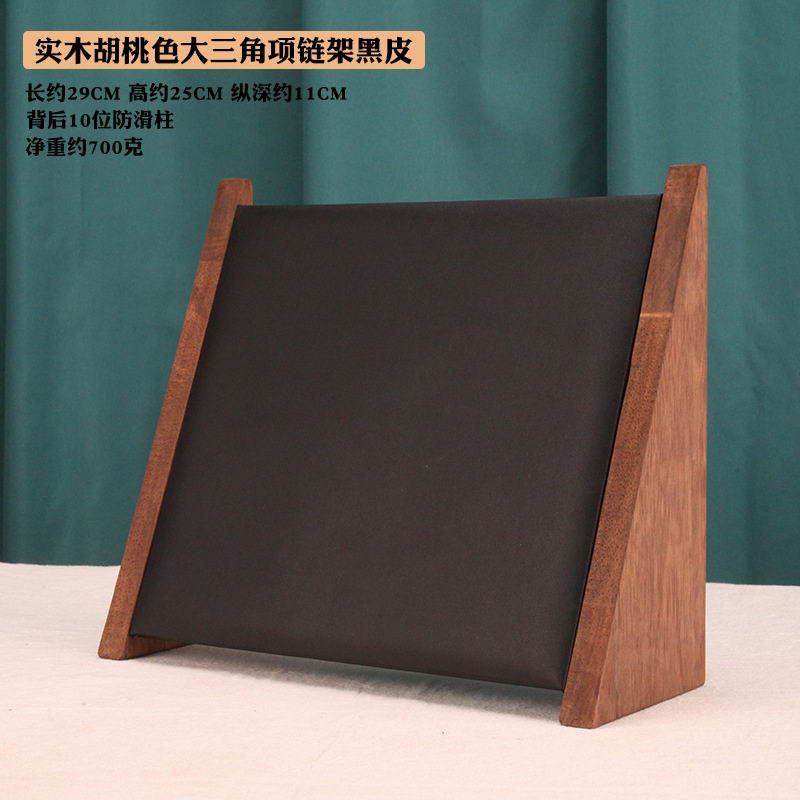 Color: Walnut color triangle necklace holder black leather (10 hooks)