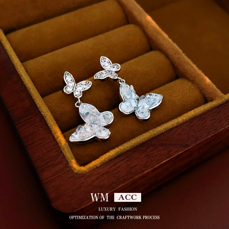 Color: 27# silver needle butterfly crystal zircon earrings 6