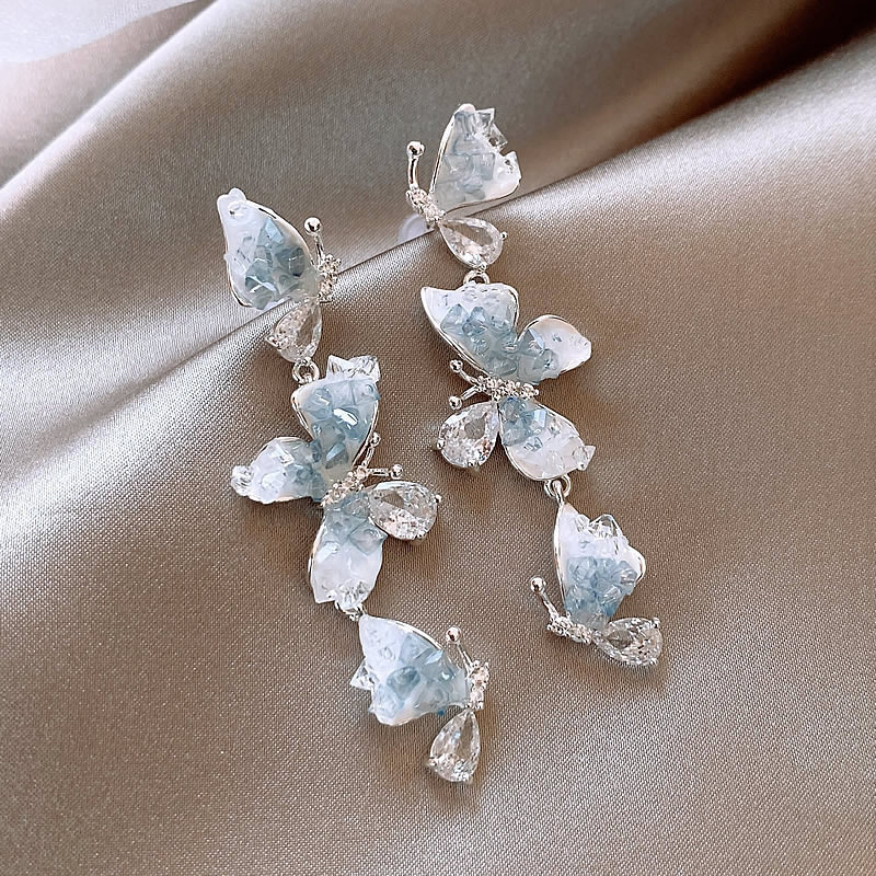 Color: 10# Silver Needle Crystal Blue Butterfly Tassel Earrings