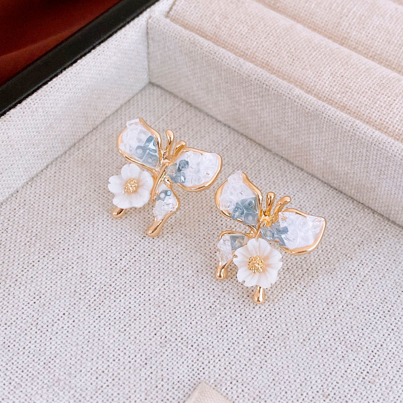 Color: 21# silver needle butterfly flower crystal earrings 1