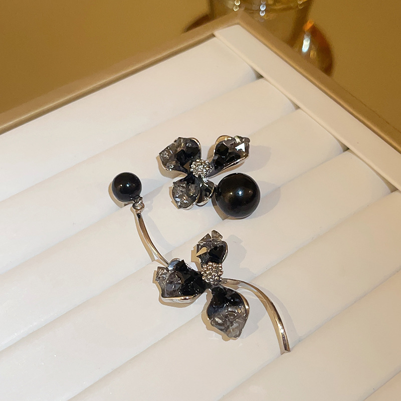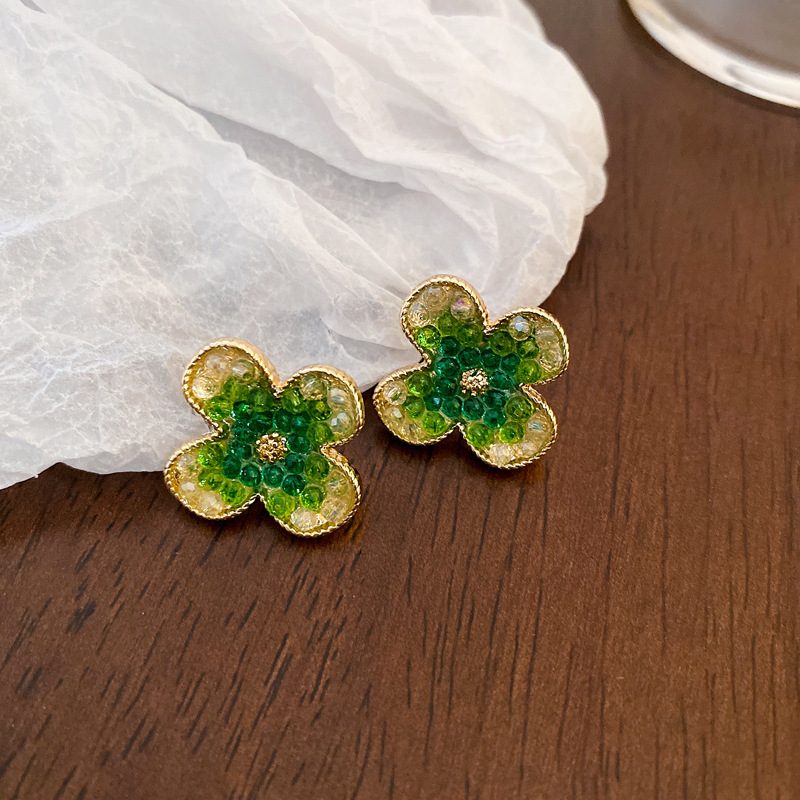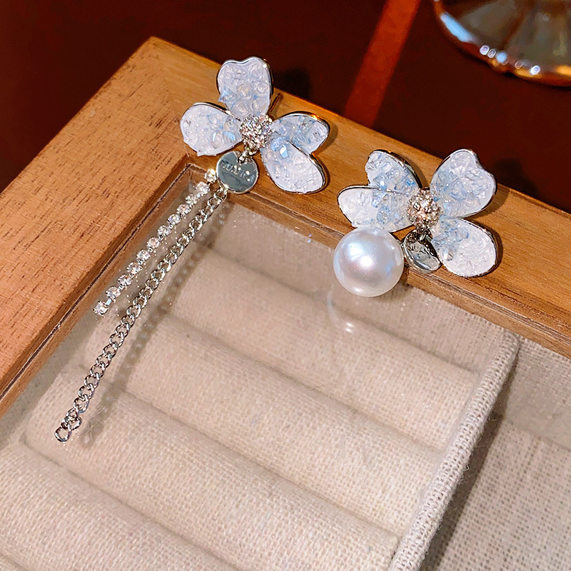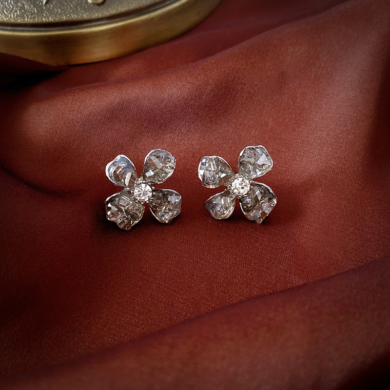 Color: 49# silver needle asymmetric crystal flower round card round bead stud earrings