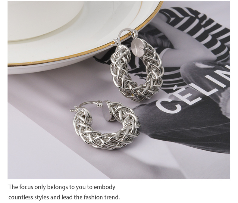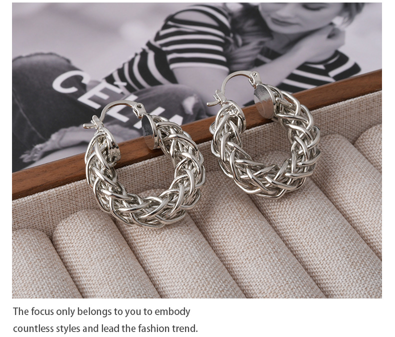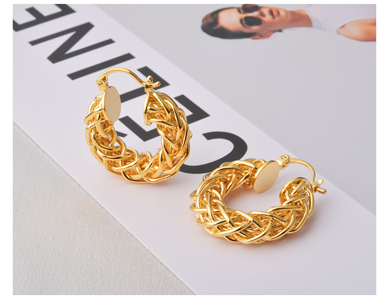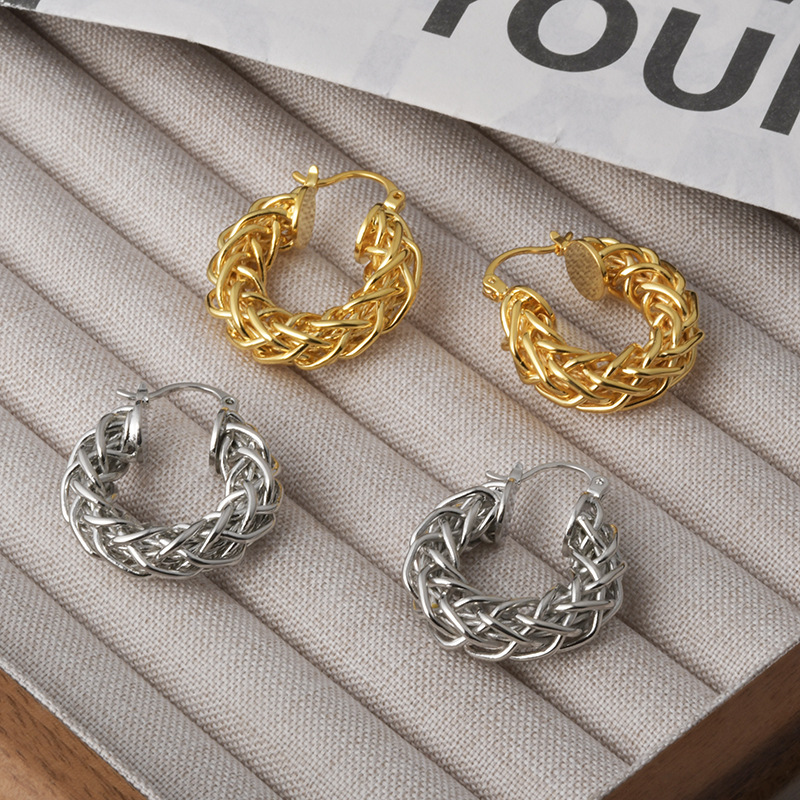 European and American Ins Style Fashion Braided Twist O-Shaped Earrings Personalized Niche Design High-End Retro Earrings for Women