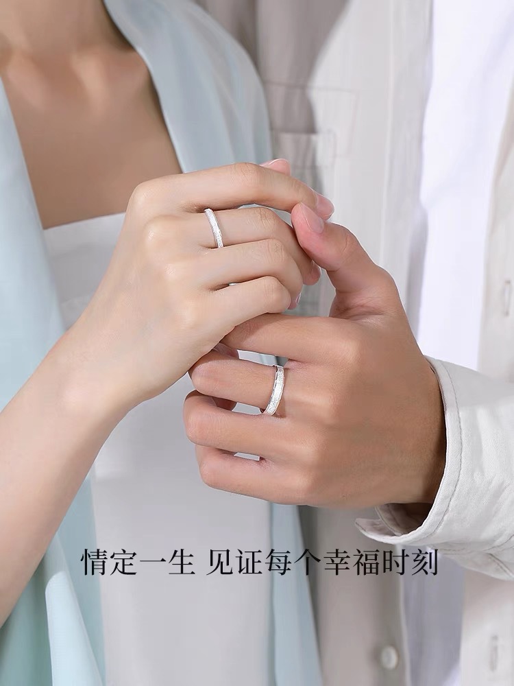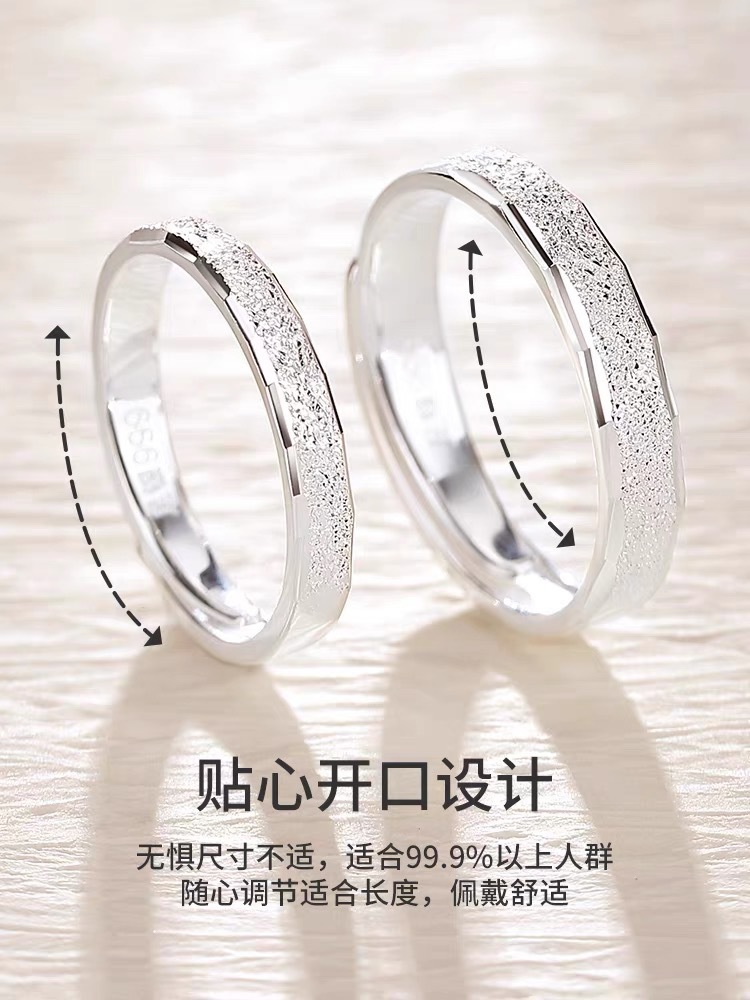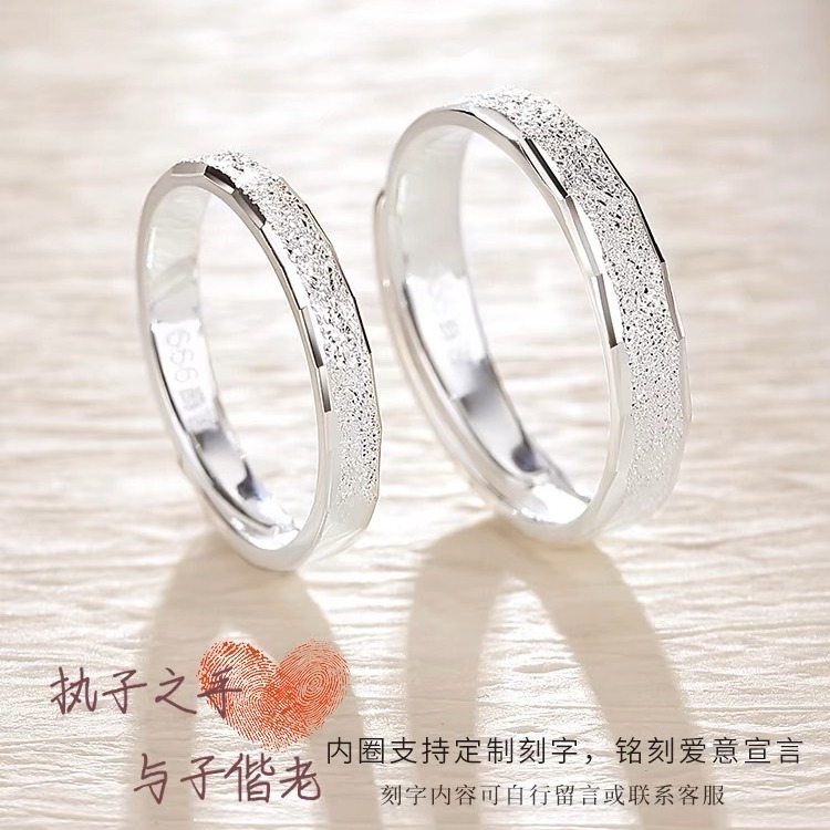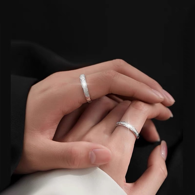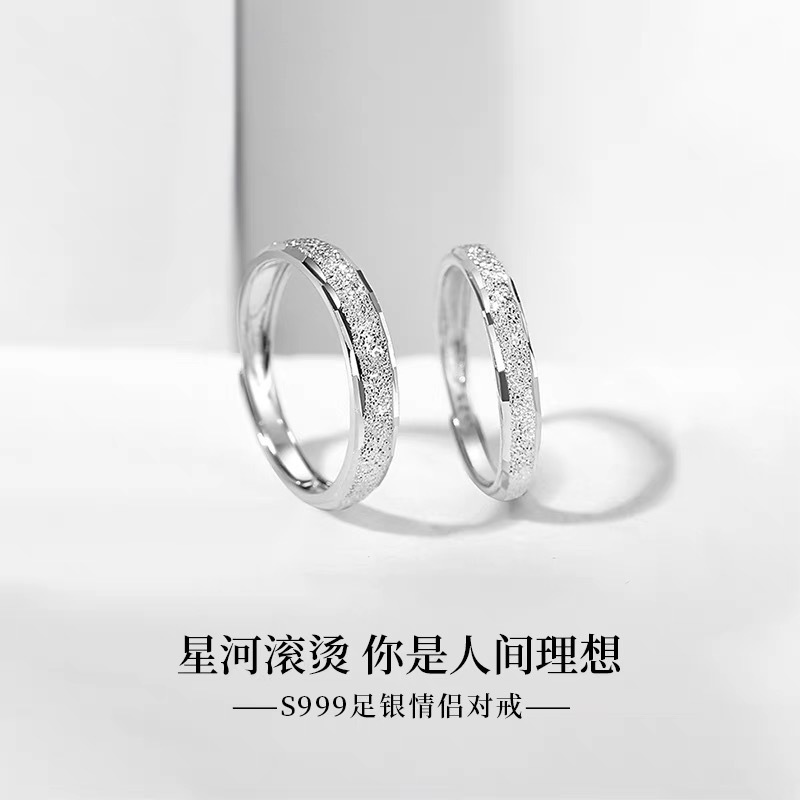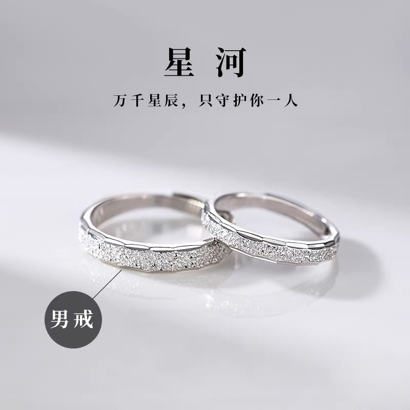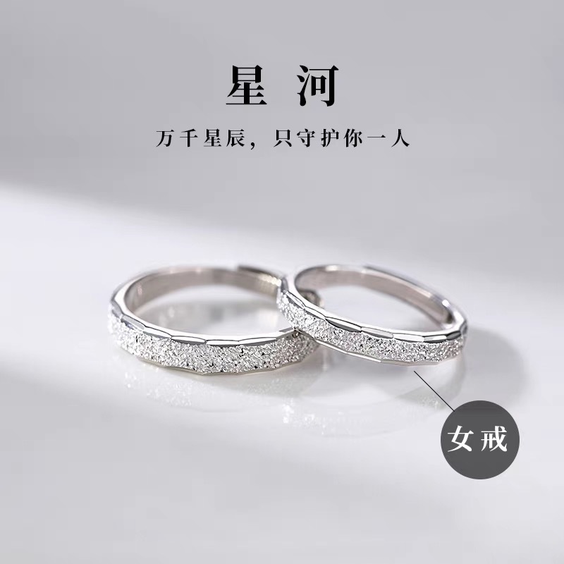 S999 Silver Star Hesu Ring Couple Ring Female Male Niche Opening Finger Ring Sterling Silver Couple Ring Ring