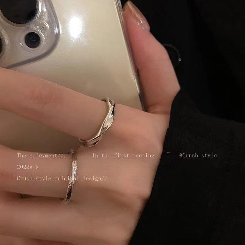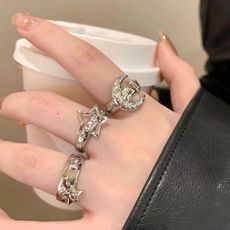 Three-piece silver color ring ring women's all-match cold style temperament simple adjustable diet finger ring open tail ring tide