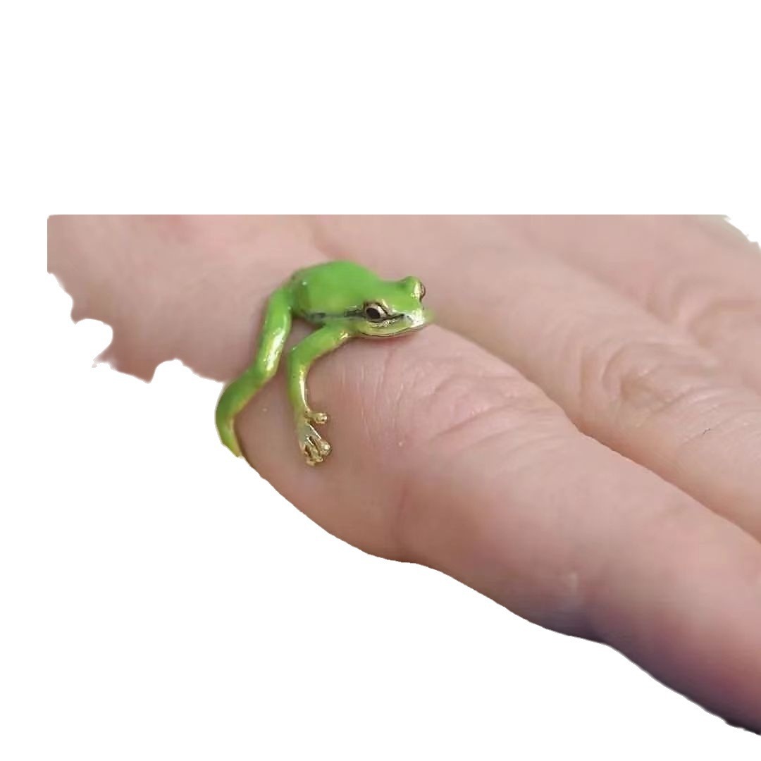 Green Funny Frog Ring Niche Design Cute Green Frog Ring Opening Adjustable Ring 2024 New