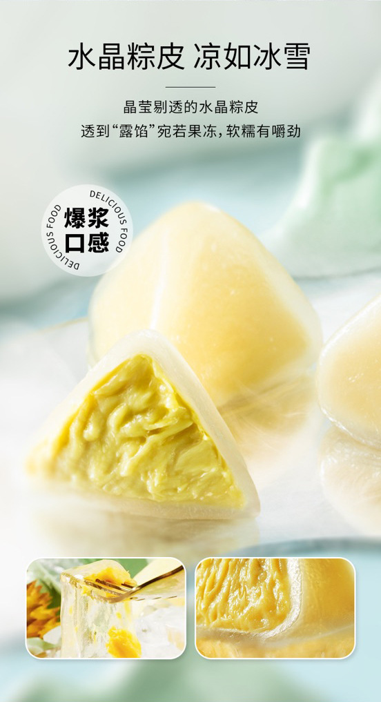 Musang King Durian Flavor Crystal Ice Zongzi Dragon Boat Festival Transparent Durian Ice Skin Ice Brown Crystal Zongzi Open Bag Ready-To-Eat Dessert