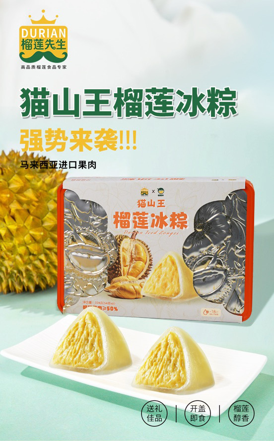 Raw materials and ingredients: Durian pulp, pastry premix powder (hydroxypropyl distarch phosphate, trehalose, edible salt, citric acid), maltose syrup, drinking water, edible vegetable oil