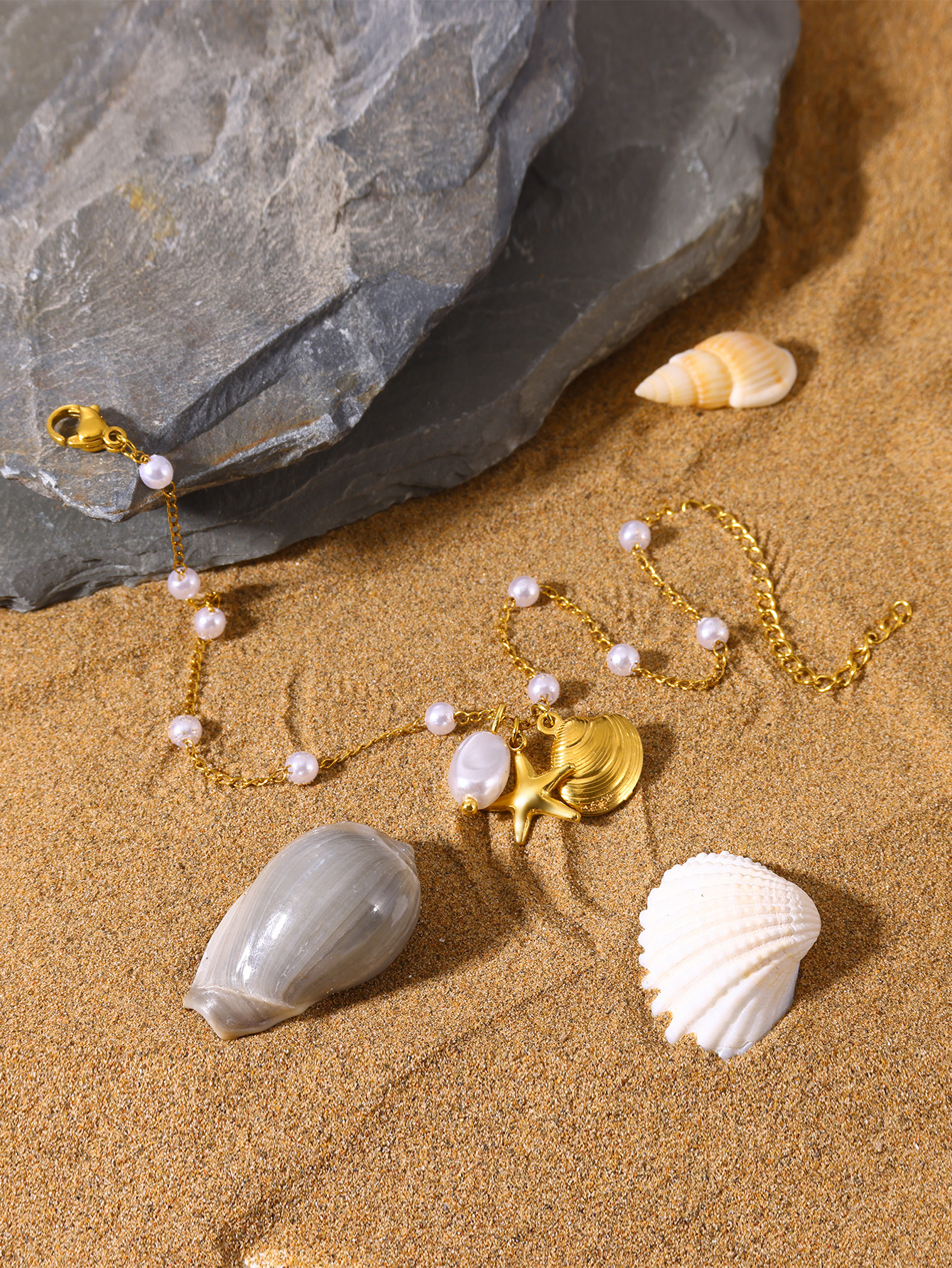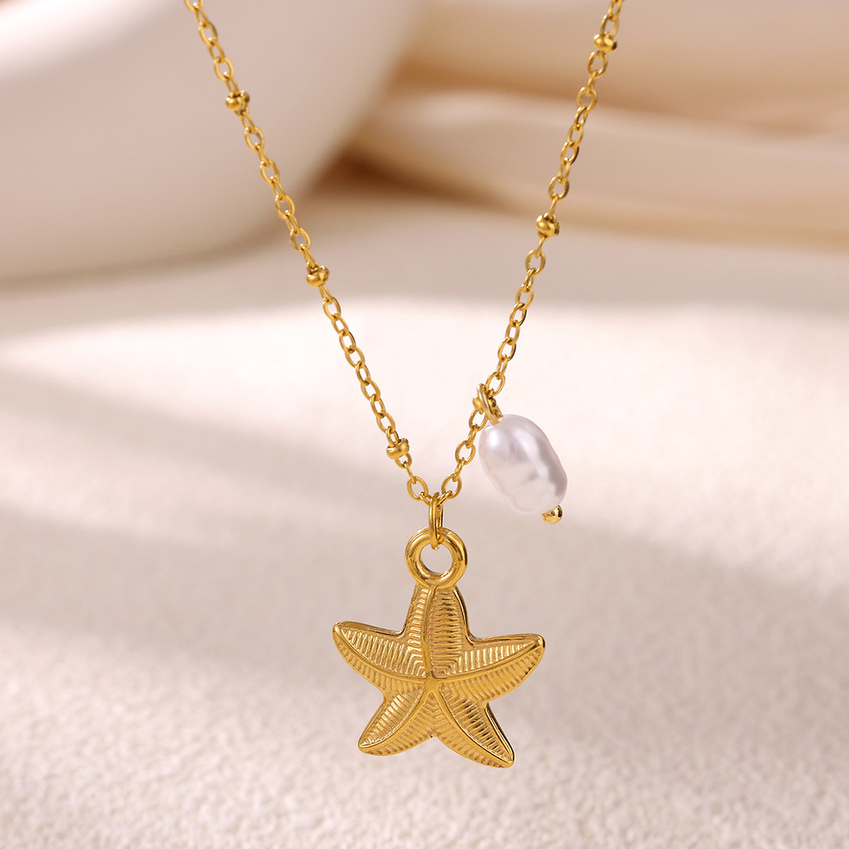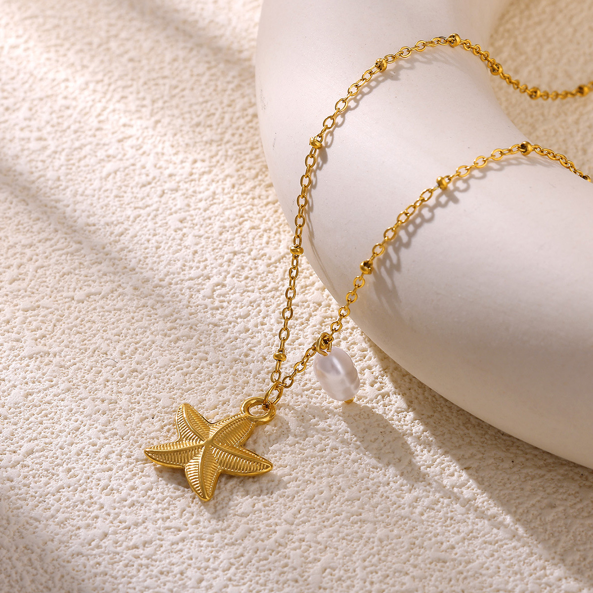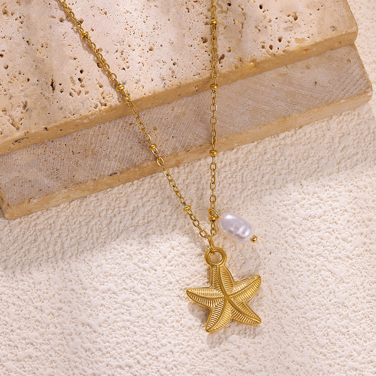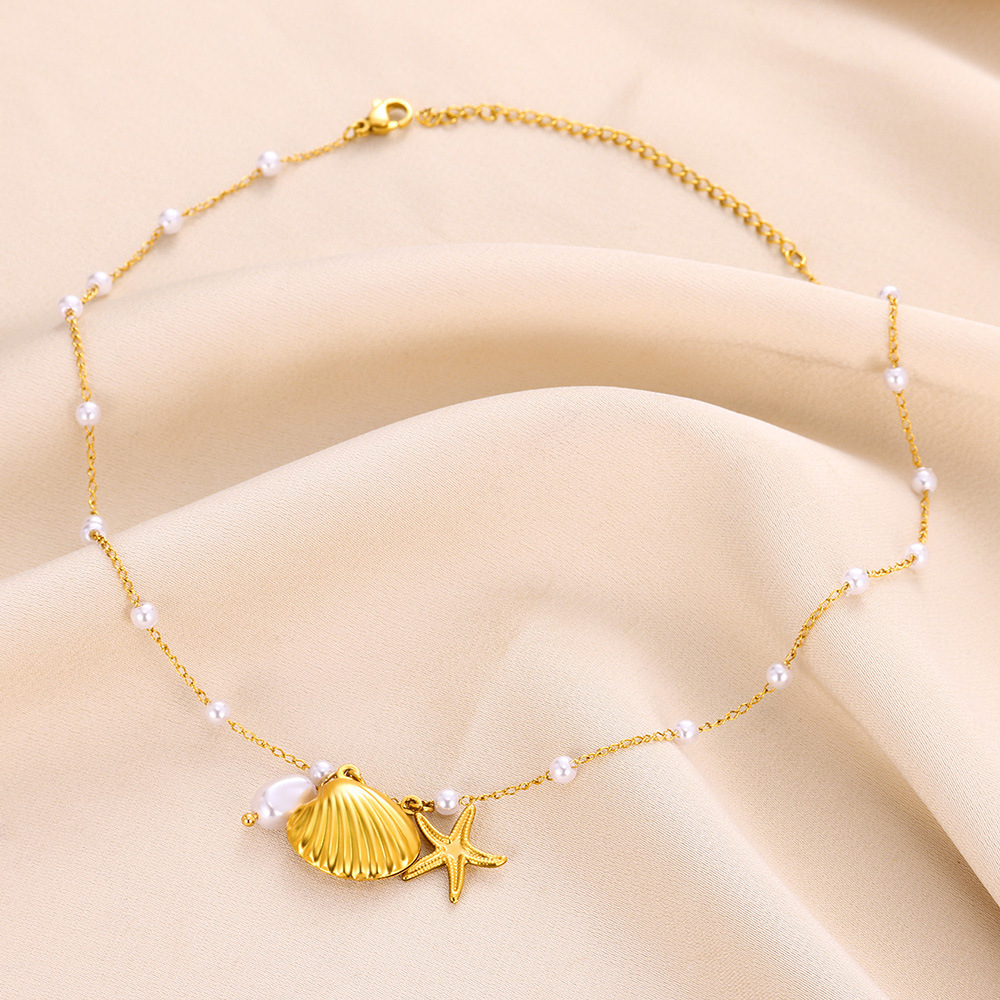 2024 Summer Beach Wind Shell Stainless Steel Necklace European and American Independent Station Hot Sale Starfish Pendant Necklace