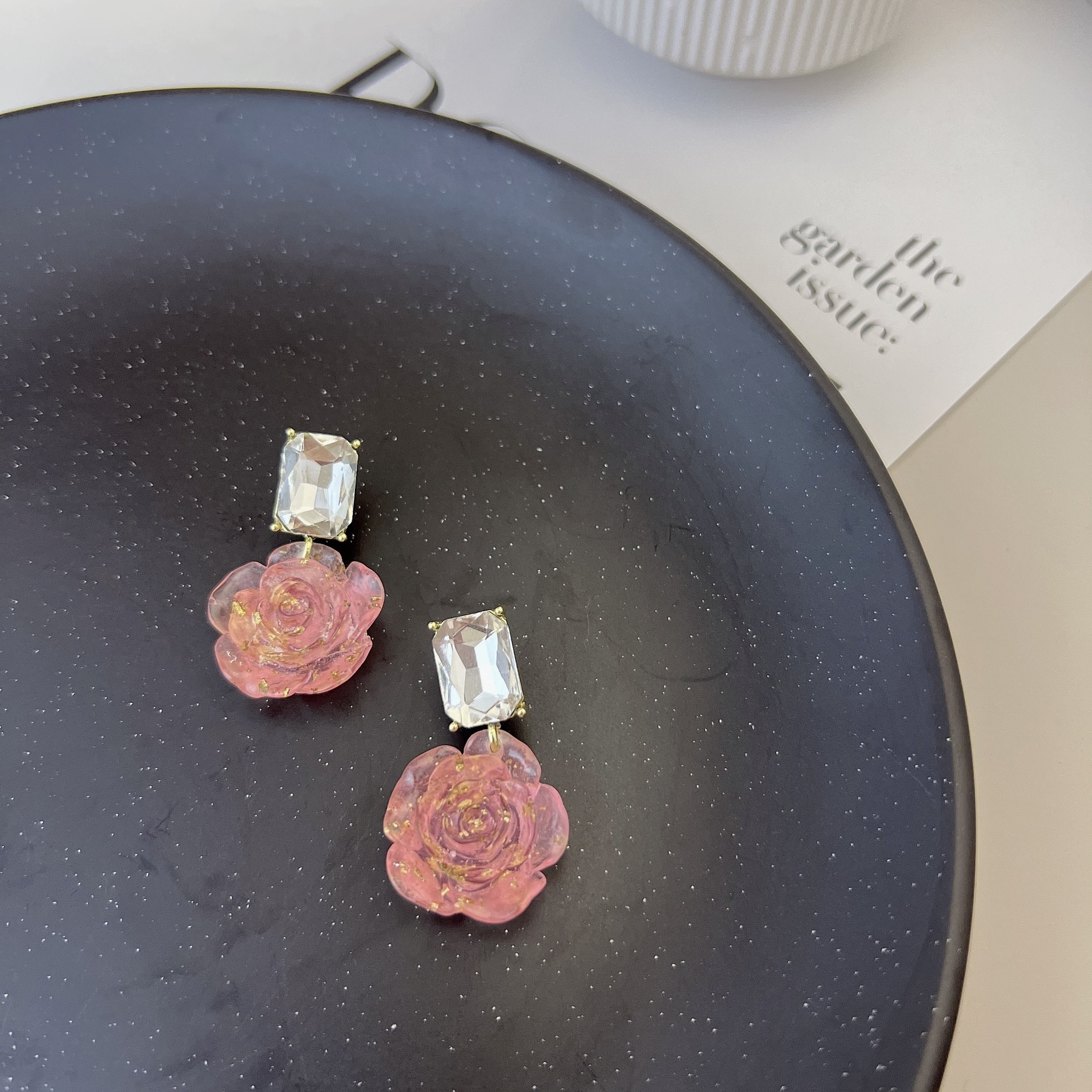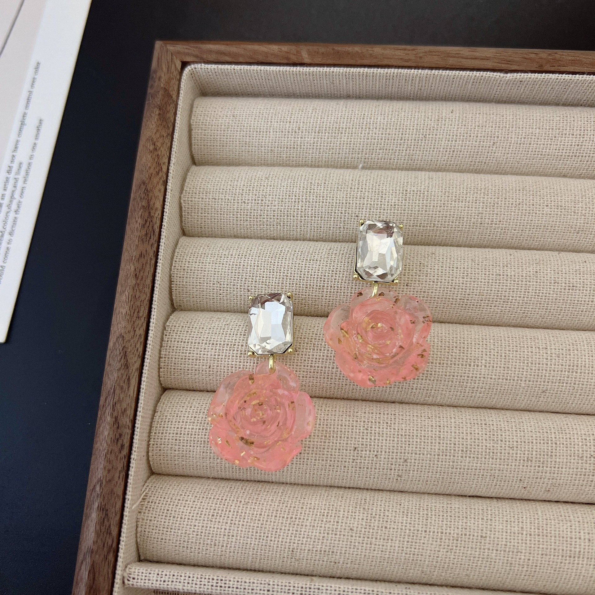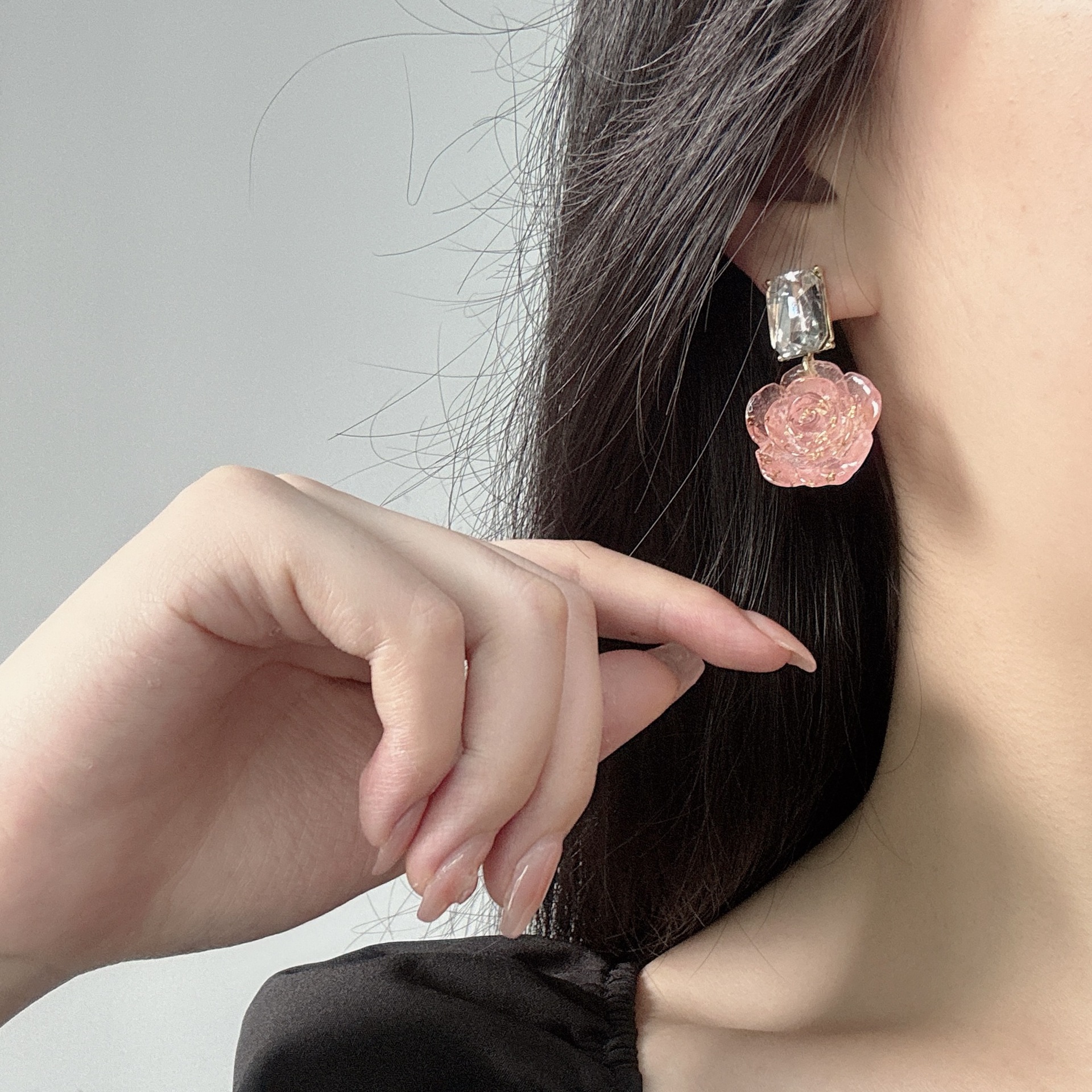 Spring and Summer Super Fairy Light Luxury Sweet Pink Crystal Rose Earrings Japanese and Korean Design Sense Niche High-grade All-match Earrings