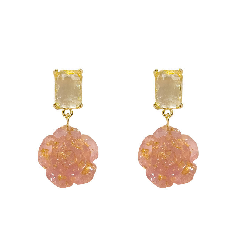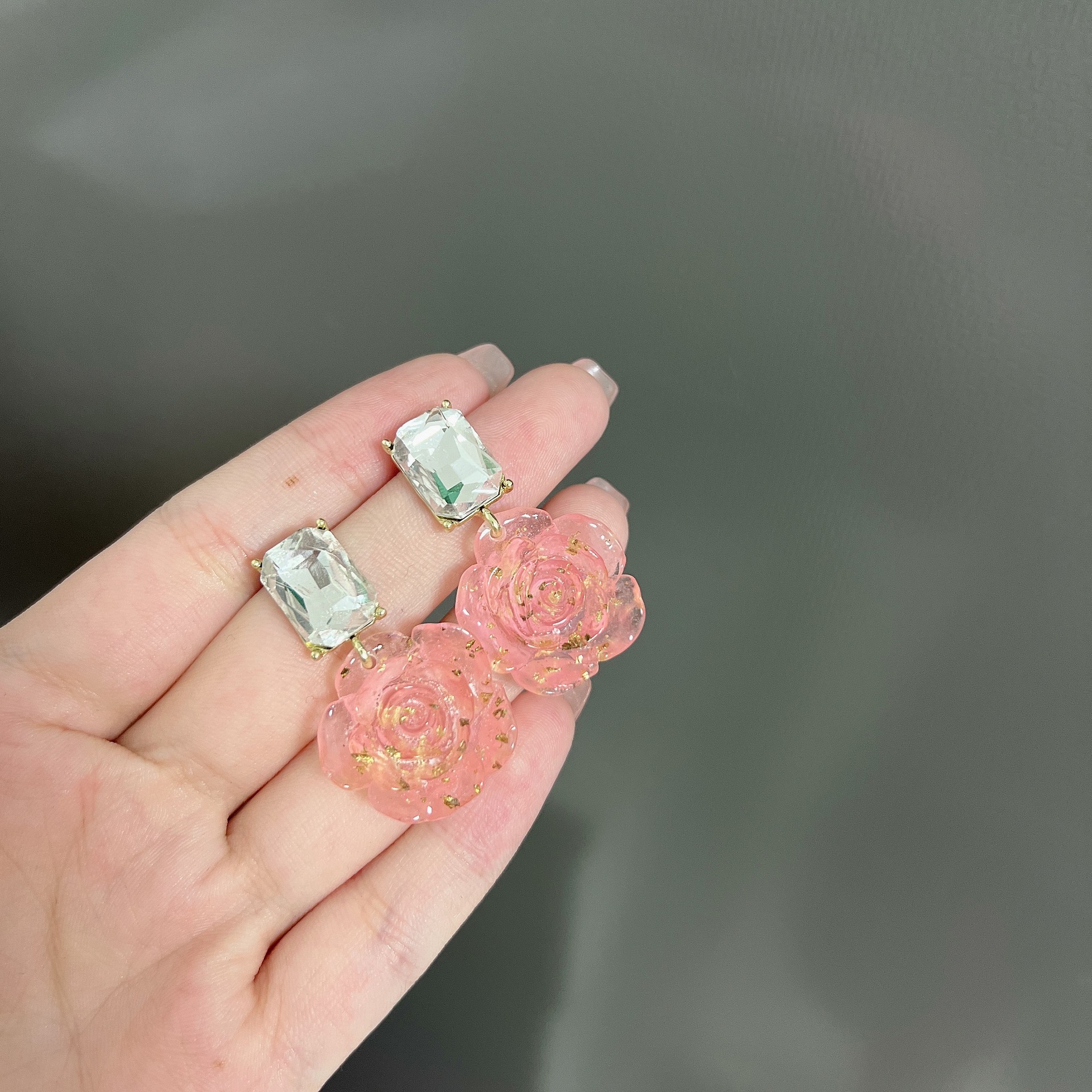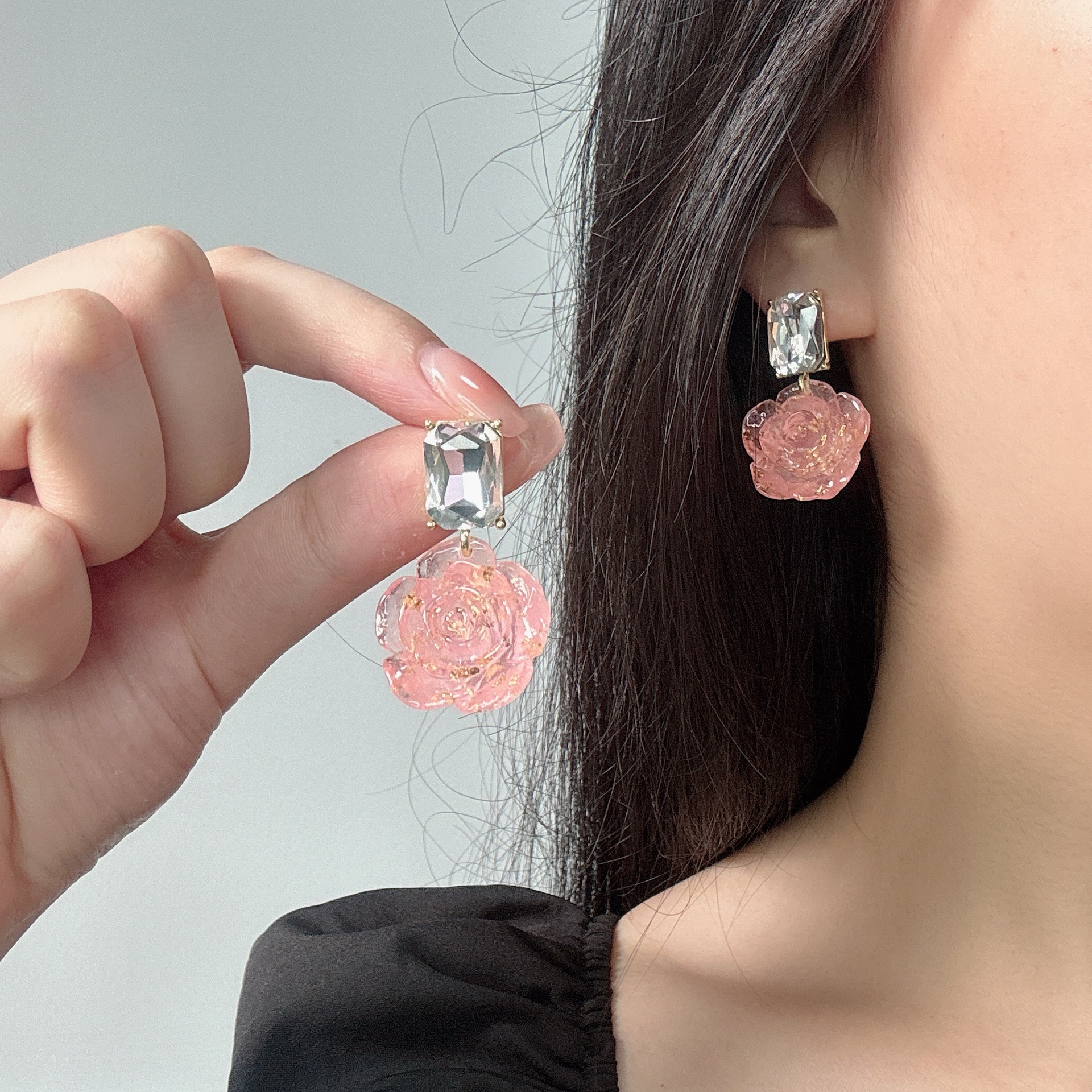 Spring and Summer Super Fairy Light Luxury Sweet Pink Crystal Rose Earrings Japanese and Korean Design Sense Niche High-grade All-match Earrings