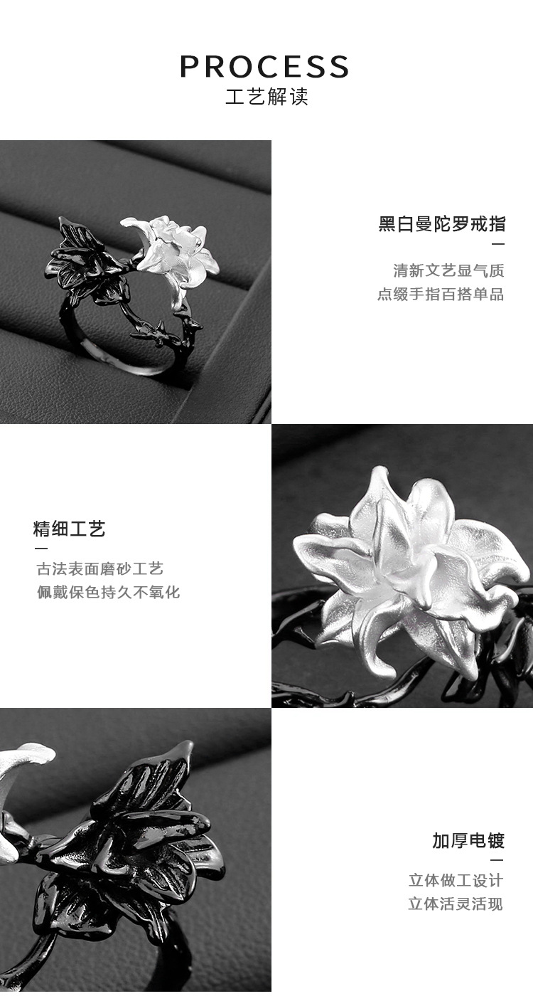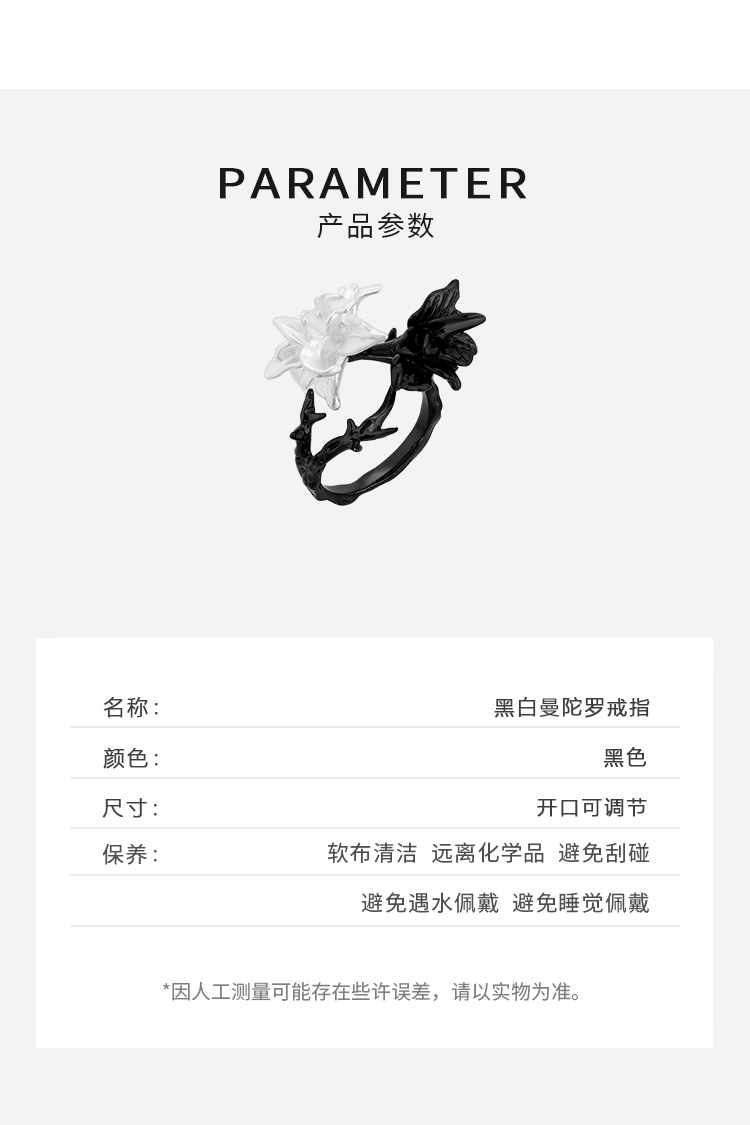 "Black and White Mandala" Bipolar Disorder Ring French Simple All-match High-grade Finger Ring