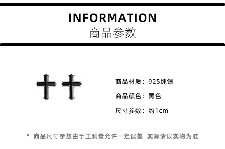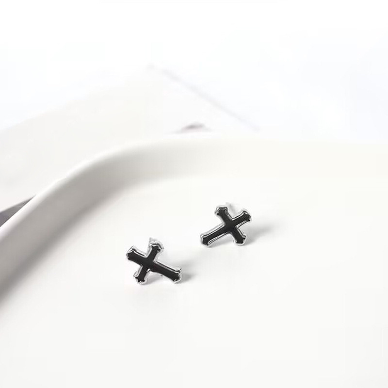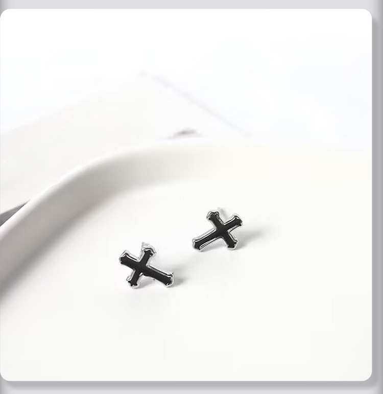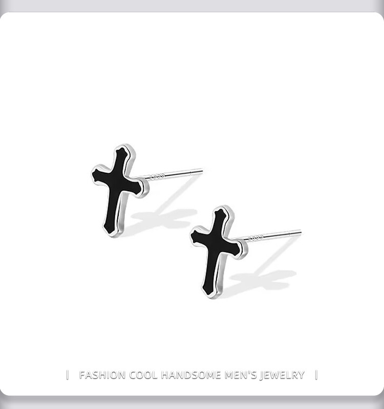 Happy Silver Silver Black Cross Earrings Men's American Style Simple Light Luxury High-end Niche Trendy Earrings