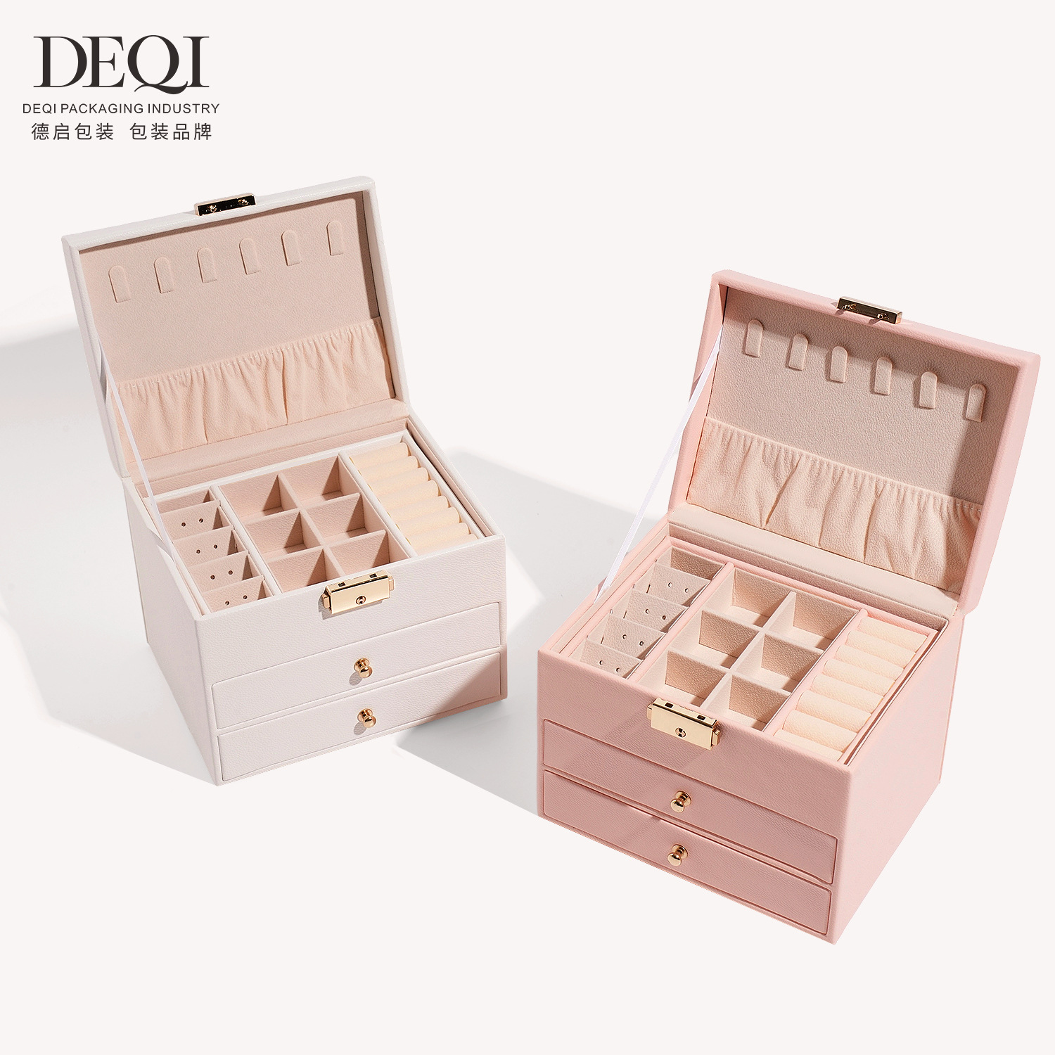 Pink Girly Jewelry Box Jewelry Storage Box Pu Leather Buckle Lock Jewelry Storage Box