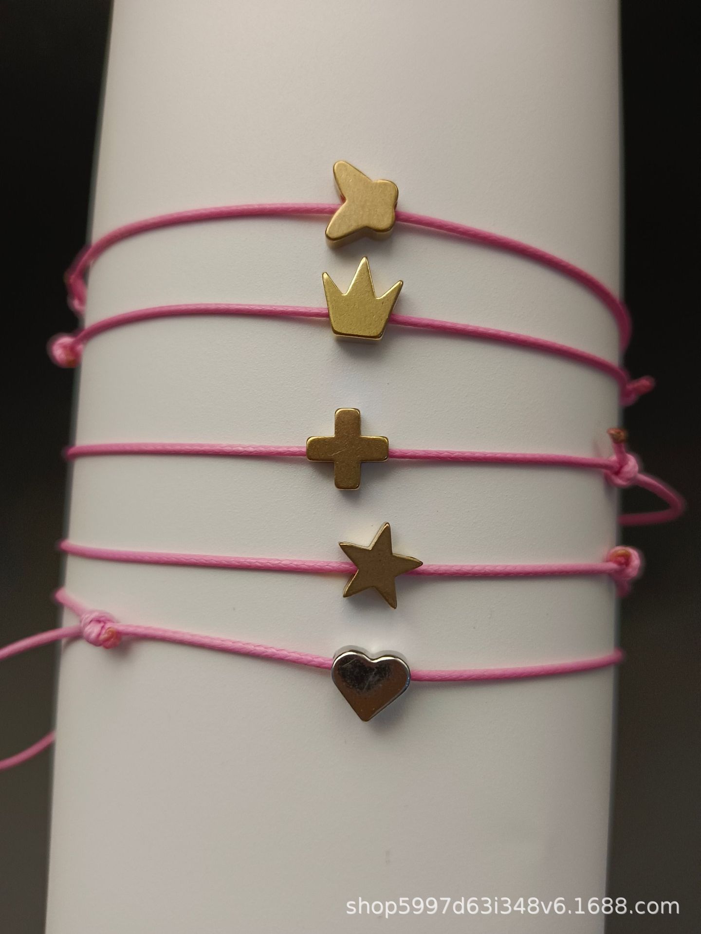 European and American fashion foreign trade jewelry love cross round butterfly pendant hand rope ladies wax rope bracelet wholesale