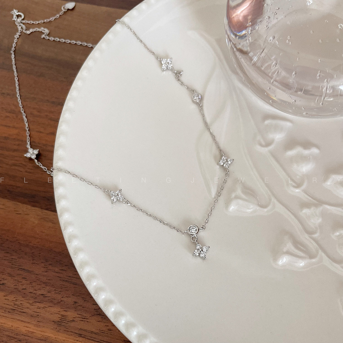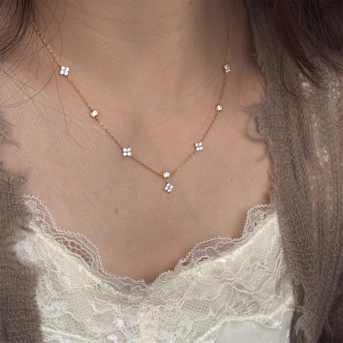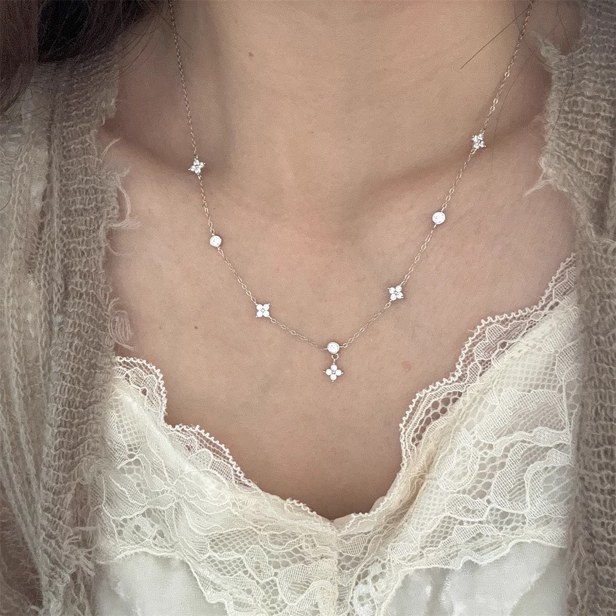 Color: Four-leaf clover flower necklace (white gold)