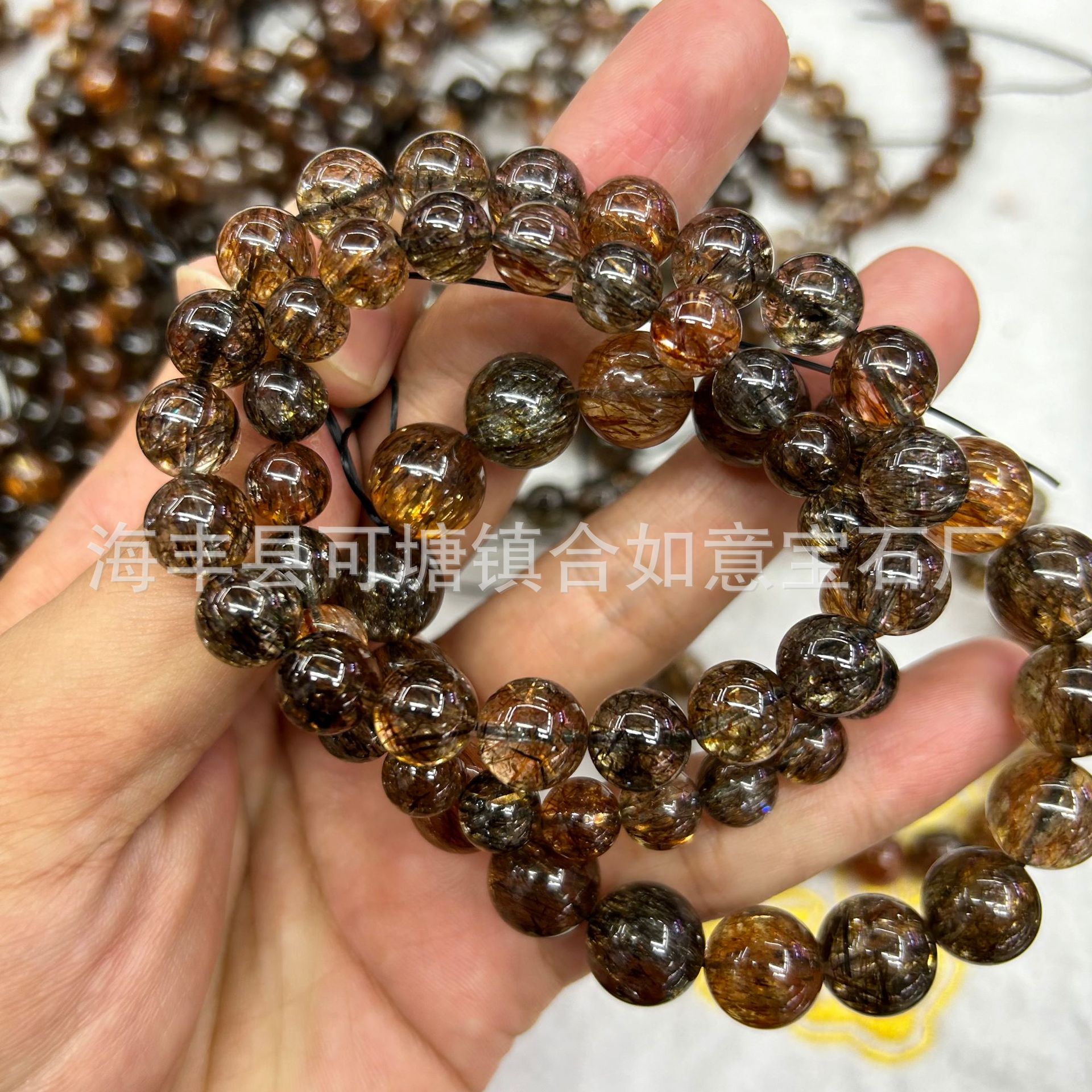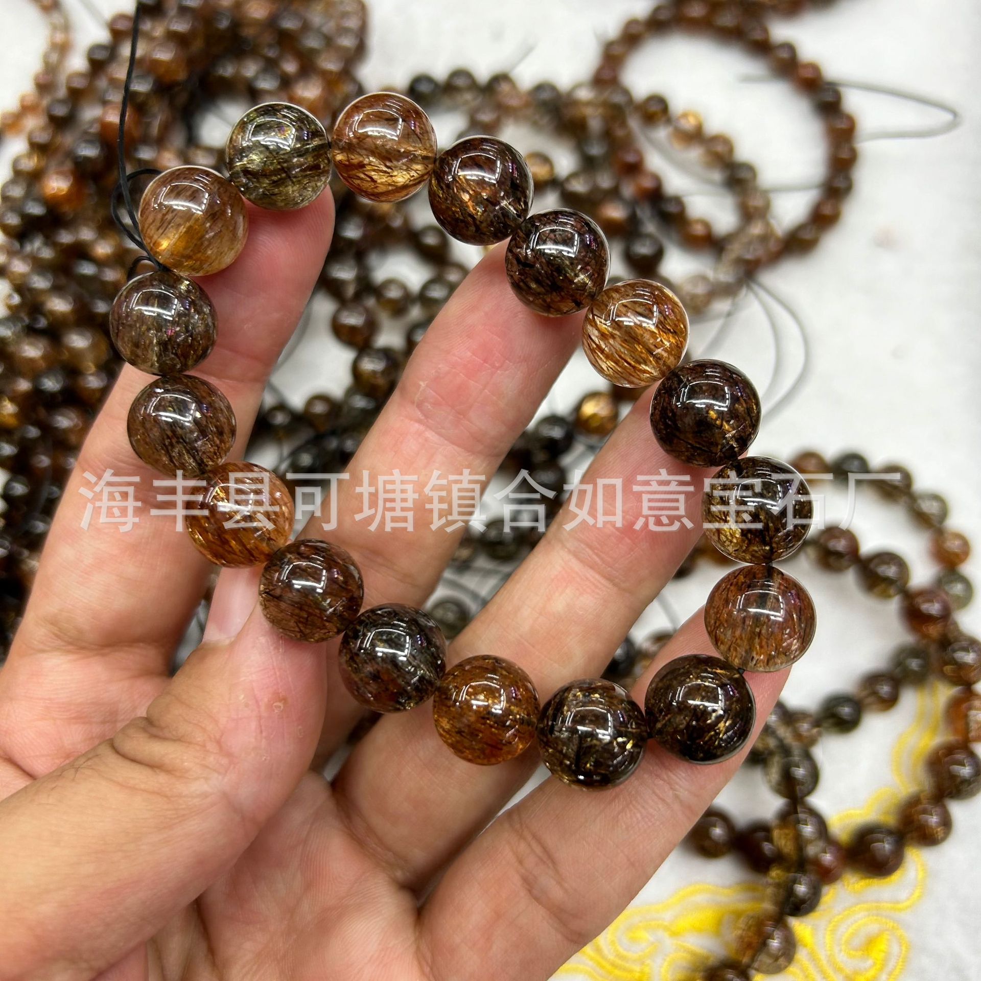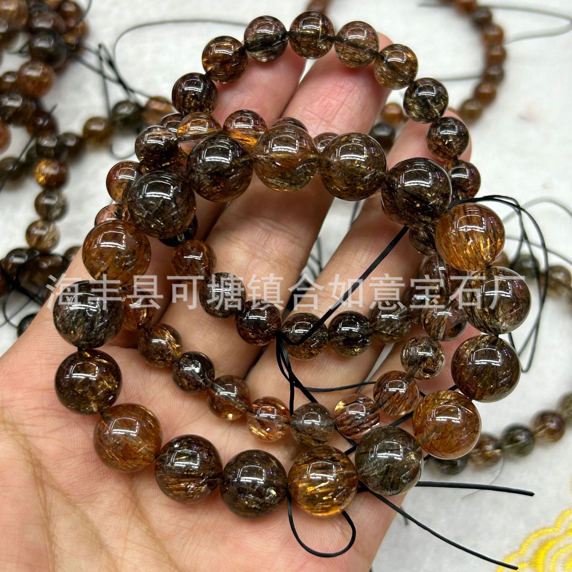 Natural black gold super seven hand string hair clear high quality backbone hair gold flash black super seven crystal bracelet wholesale