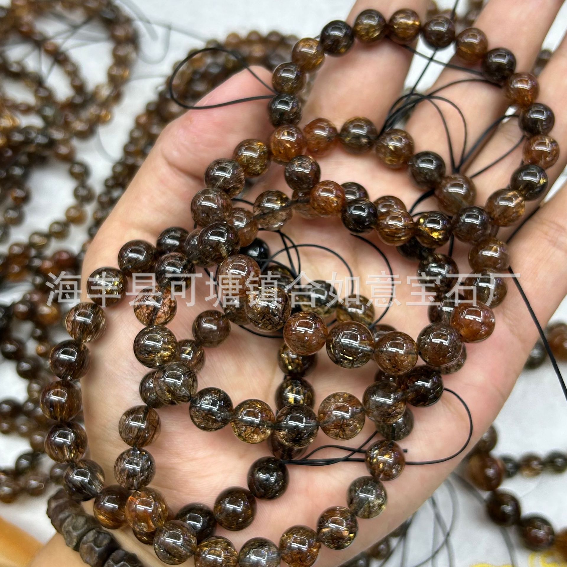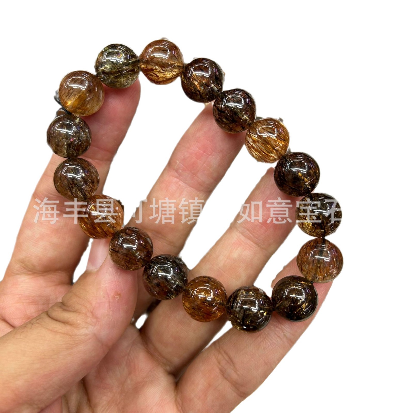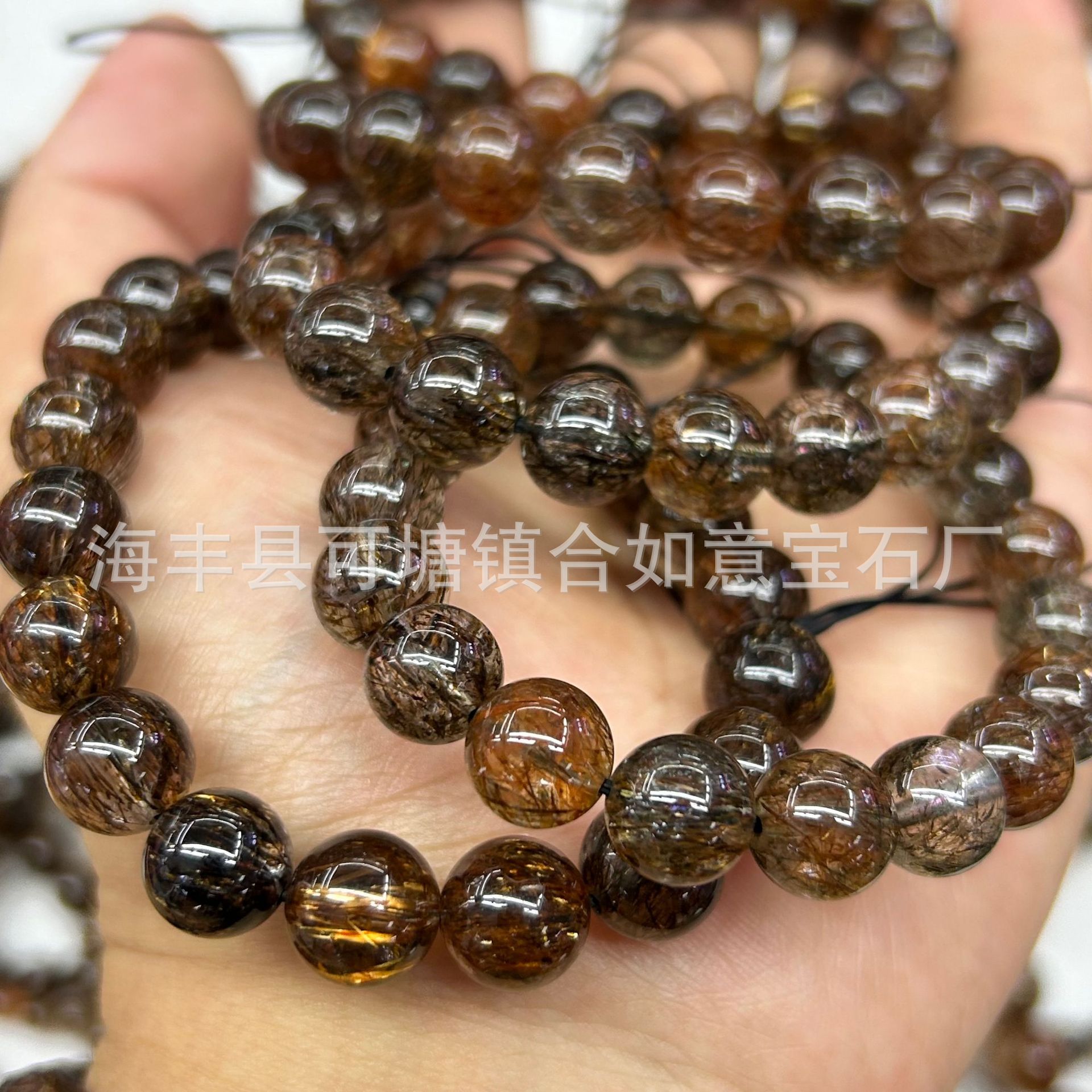Natural black gold super seven hand string hair clear high quality backbone hair gold flash black super seven crystal bracelet wholesale