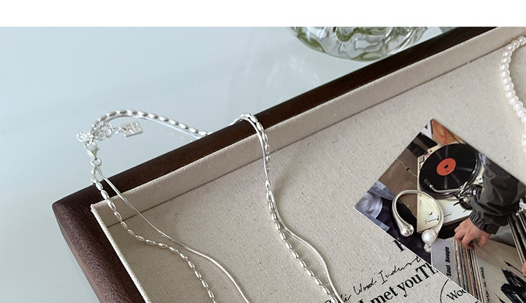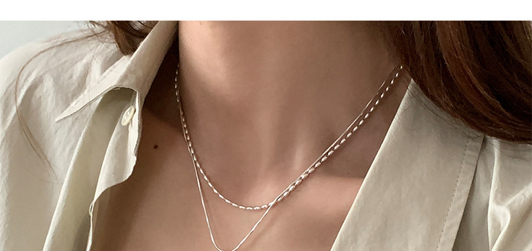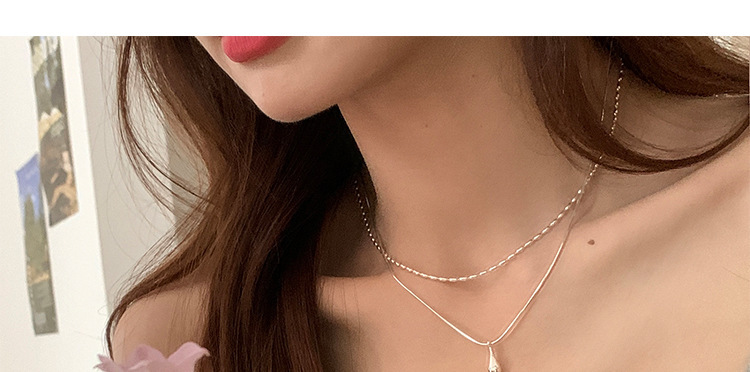 S925 Water Drops Double Layer Necklace 925 Sterling Silver Women's All-match High-end Rice Grain Clavicle Chain Light Luxury Niche Clavicle Chain