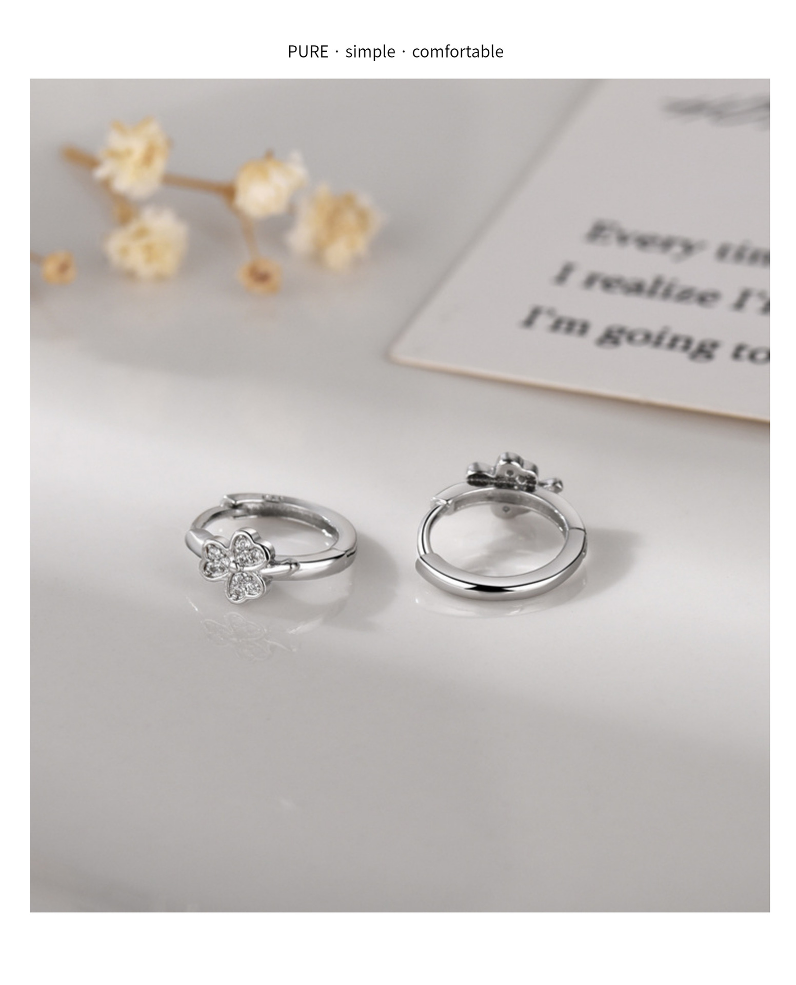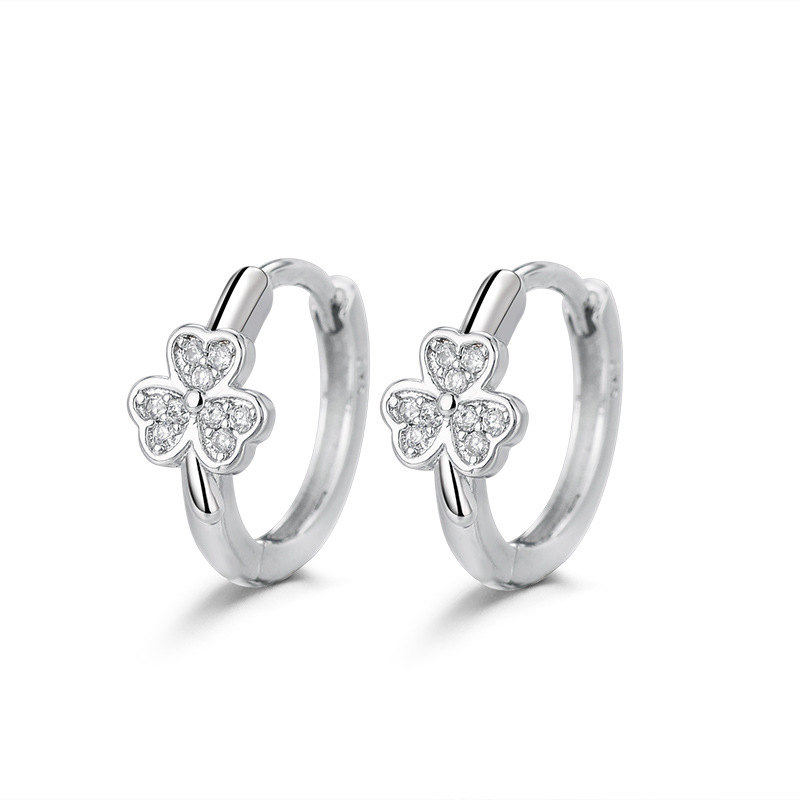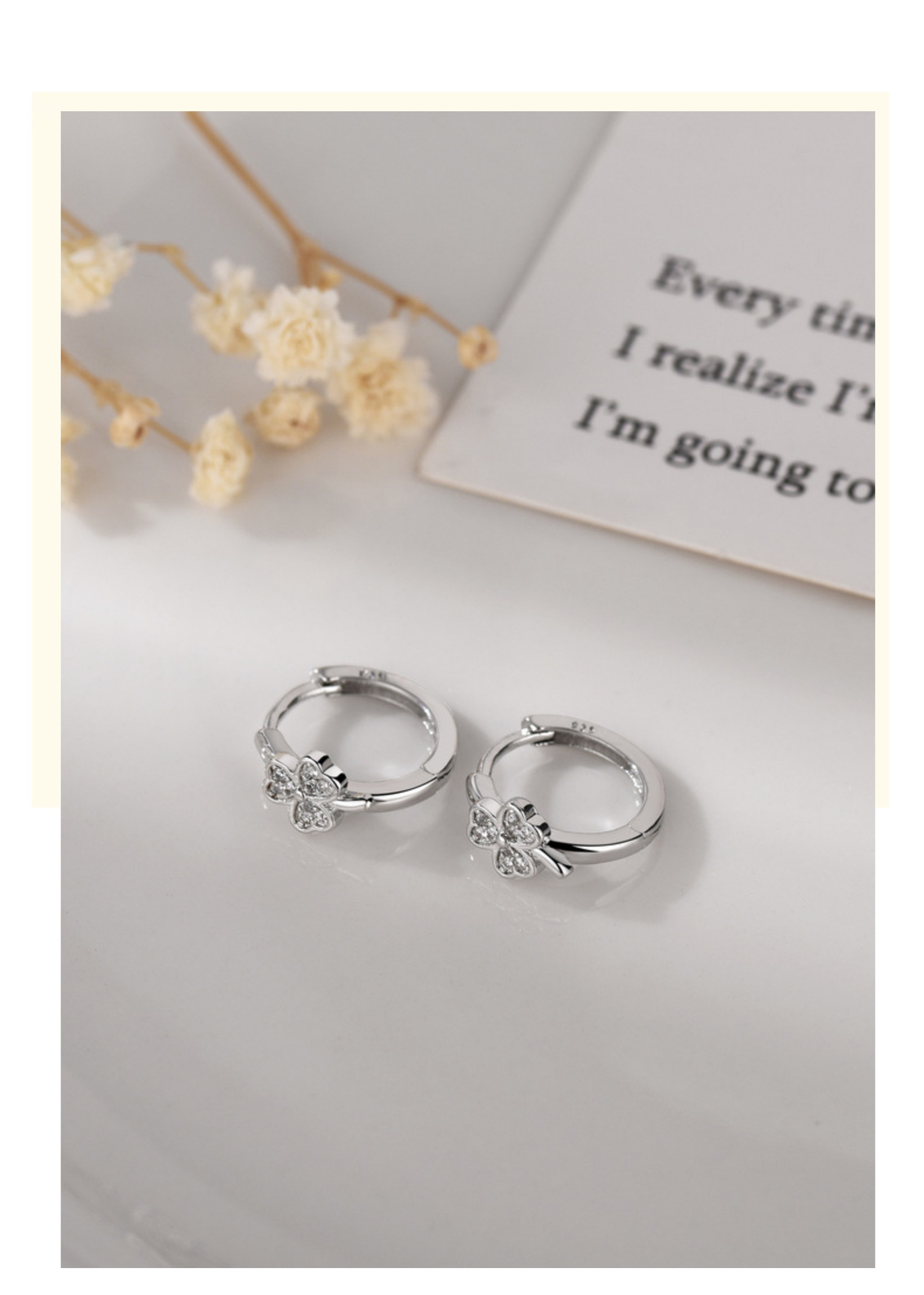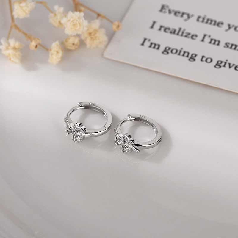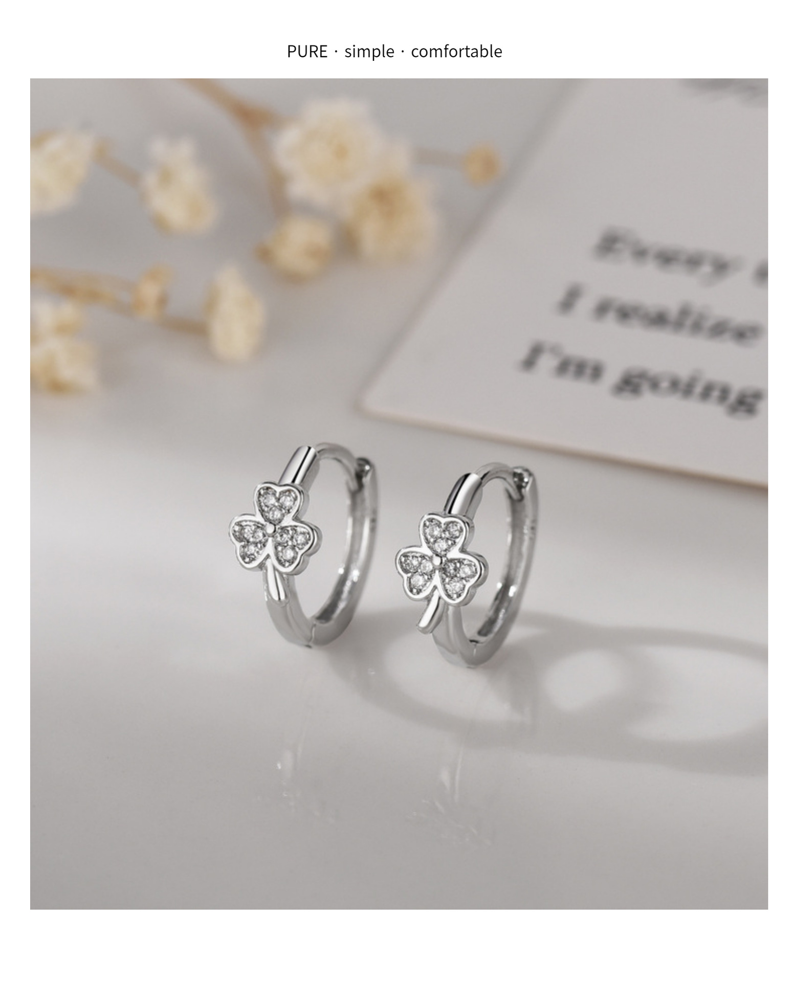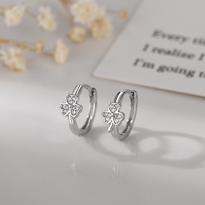 Clover Zircon Ear Buckle New Japanese and Korean Fashion Fresh and Sweet Three-petal Grass Flower Diamond Ear Ring Female Meilong