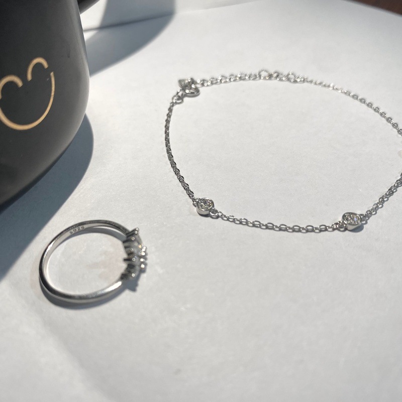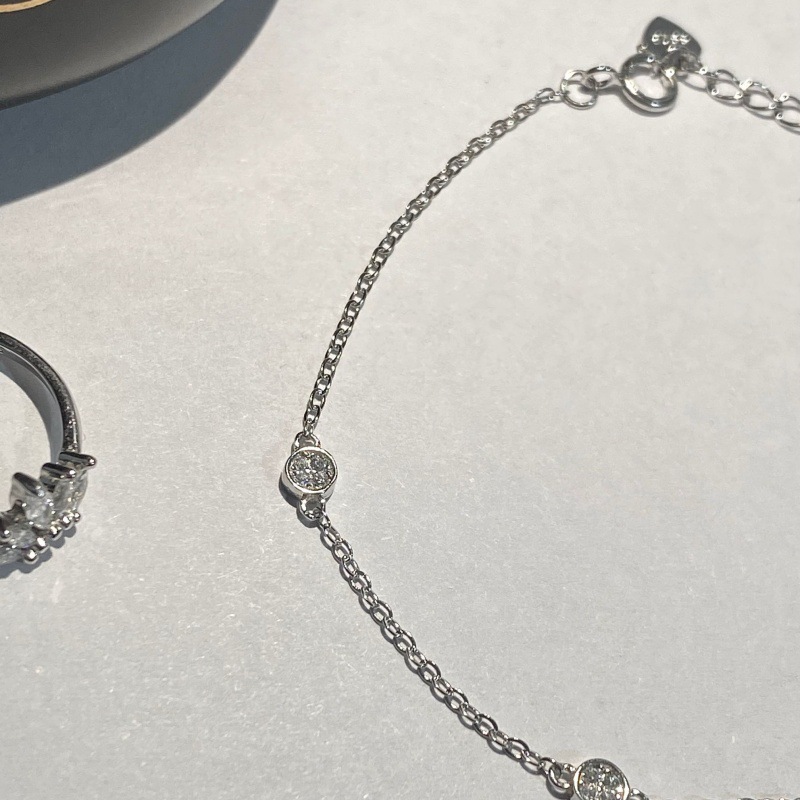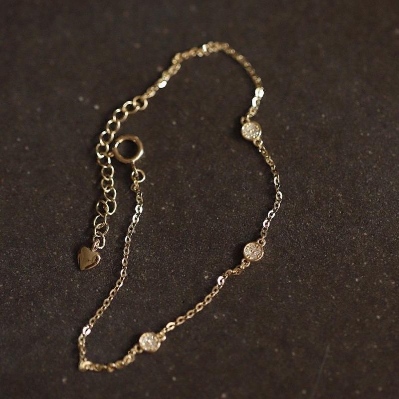 925 Sterling Silver Plated 14K Gold Zircon Triple Strike Small Disc Japanese Style All-match Overlapped Exquisite Daily Fine Bracelet