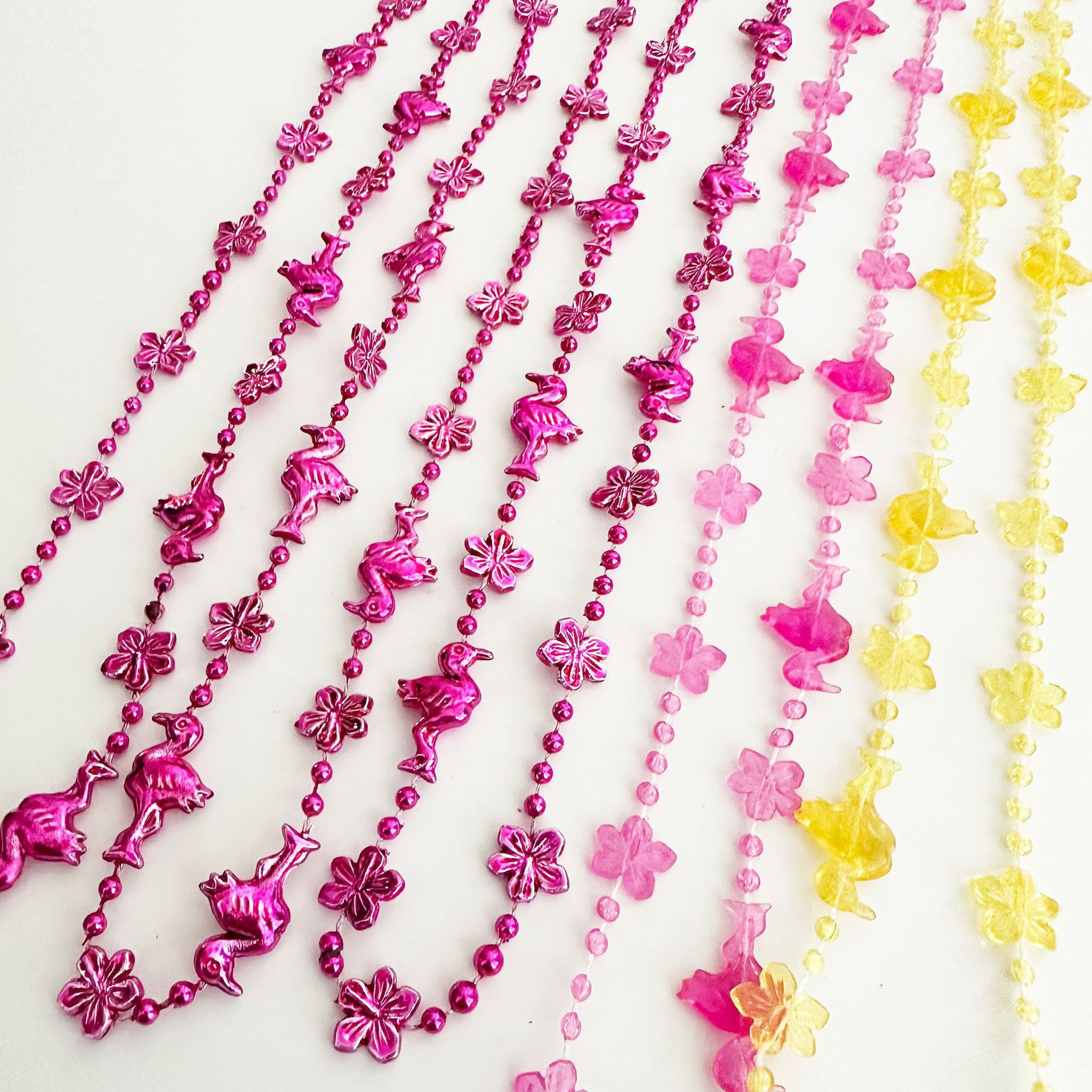 Cross-Border Hot-Selling Party Pink Necklace Lacquered Bead Chain Flamingo Hibiscus Beaded Hawaiian Party Props and Accessories